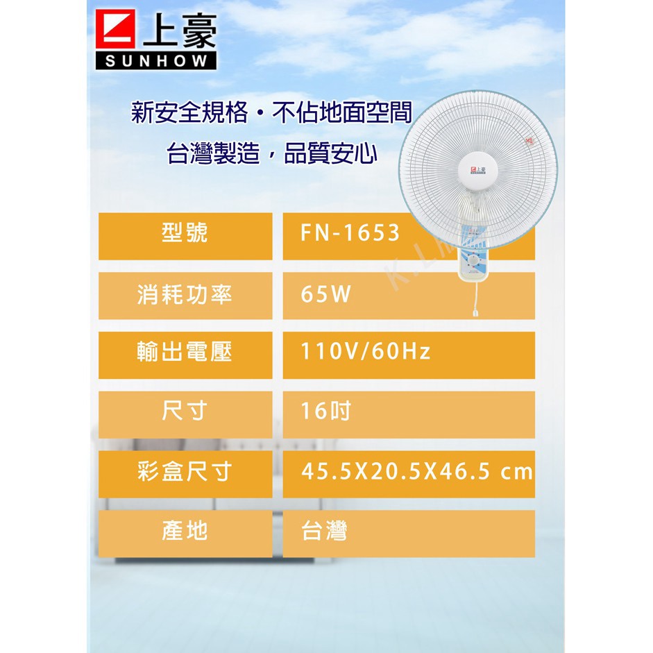 上豪 16吋掛壁扇 FN-1653 廠商直送