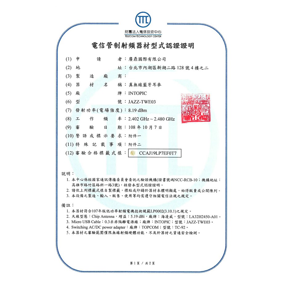 INTOPIC 真無線 藍芽耳機 藍牙耳機 藍牙耳麥 TWE03 現貨 蝦皮直送