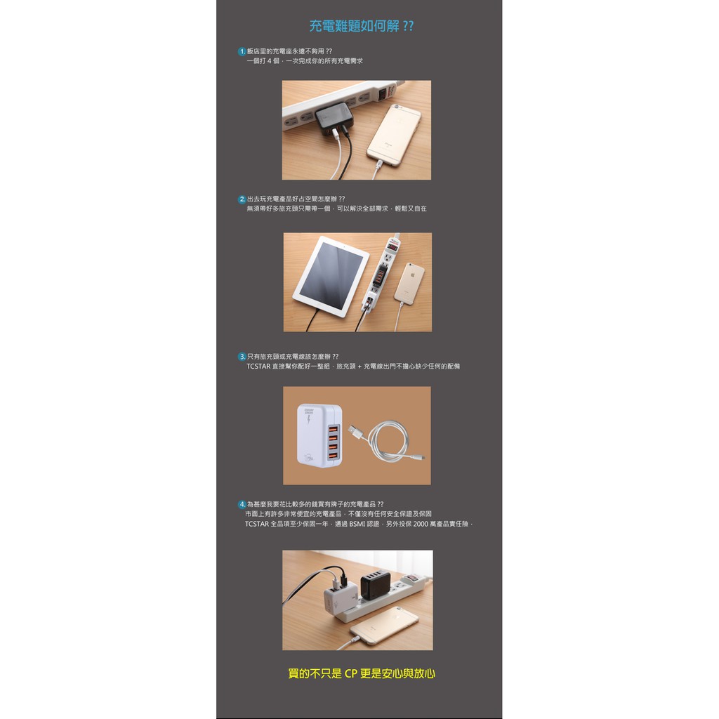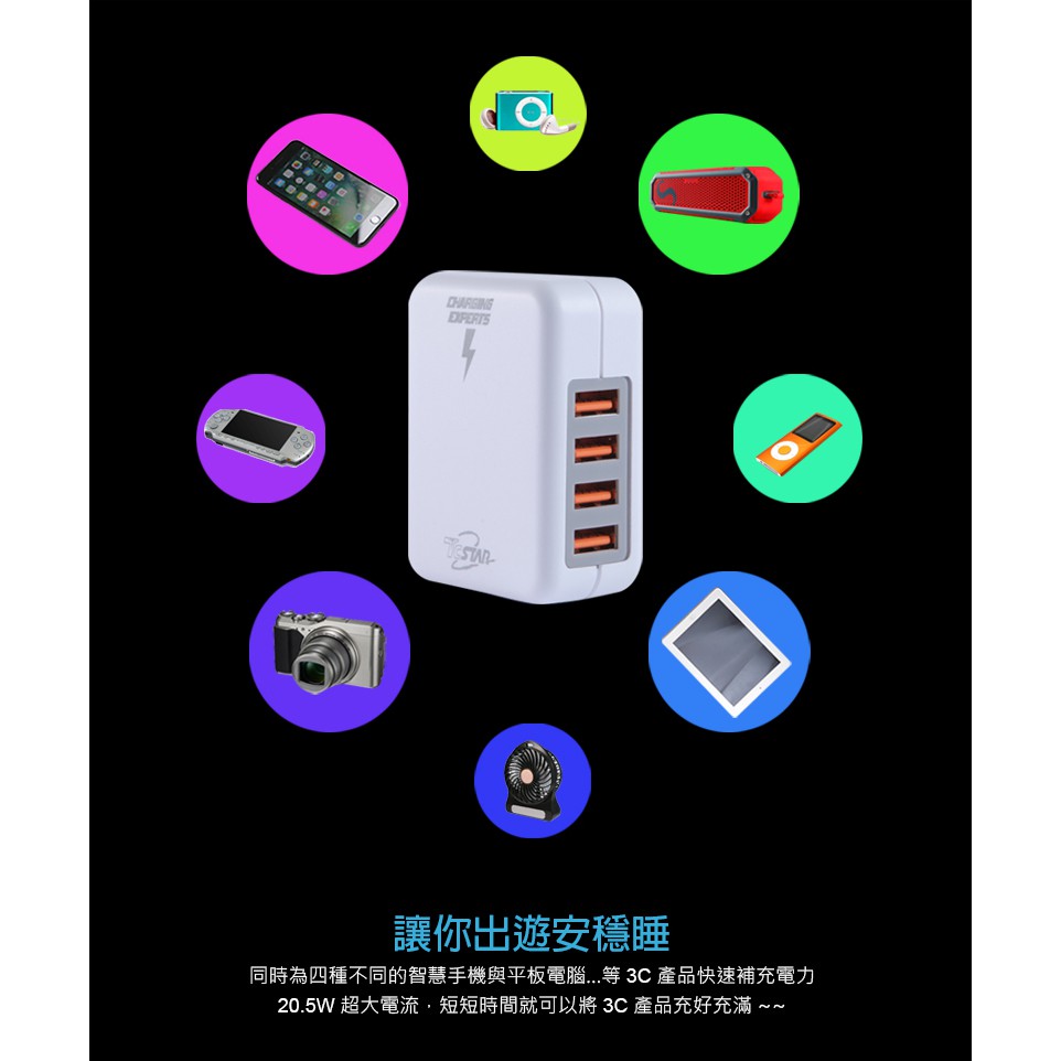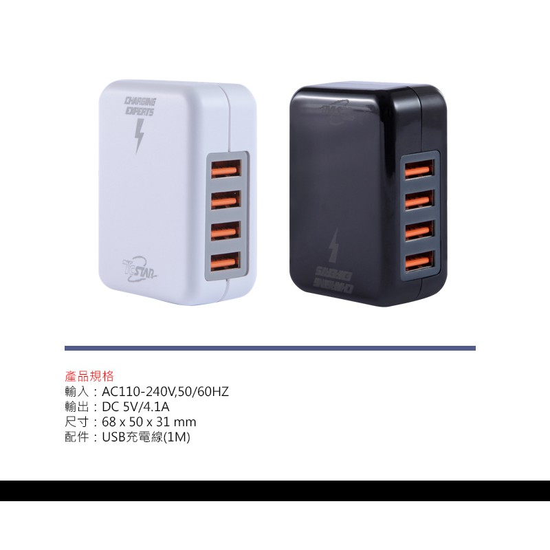 TCSTAR 4埠 充電器 充電頭 TCP4100BK/TCP4100WE 4孔輸出 4.1A大電流 防火 蝦皮直送