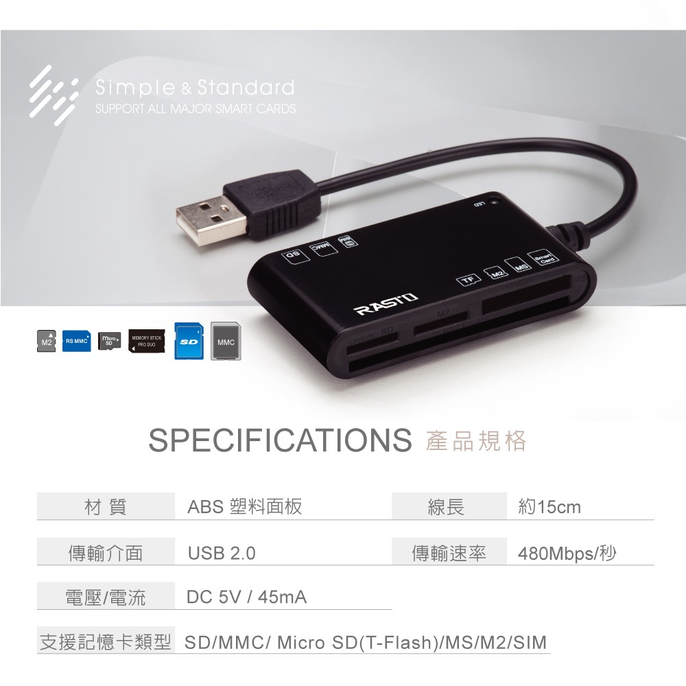 RASTO RT3 晶片ATM+五合一記憶卡複合讀卡機 現貨 蝦皮直送