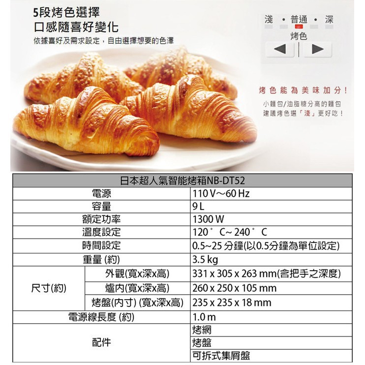 Panasonic 國際牌 9L日本超人氣智能烤箱 NB-DT52 廠商直送