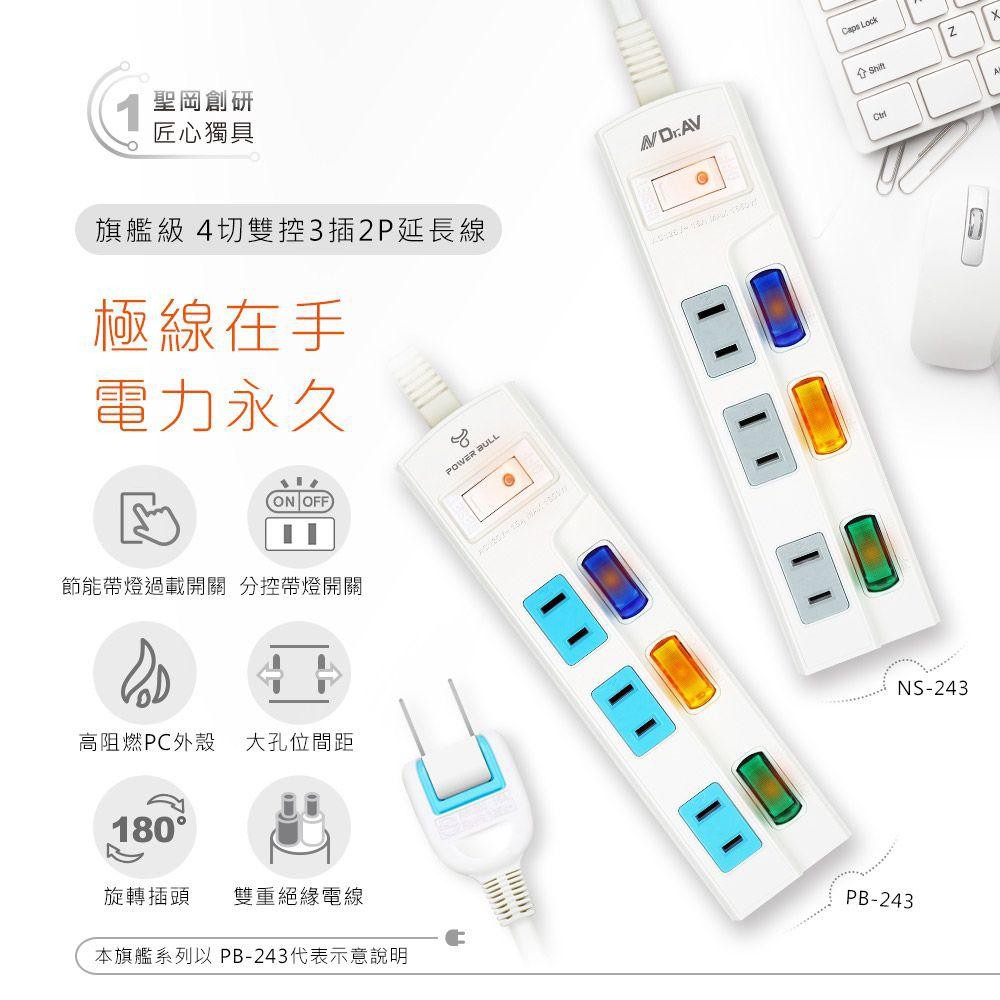 聖岡科技 4切双控3插2P延長線 旗艦級 (1.5米) 插頭 插座壁插 擴充插座 分接插座 轉接插頭 轉換插頭 廠商直送
