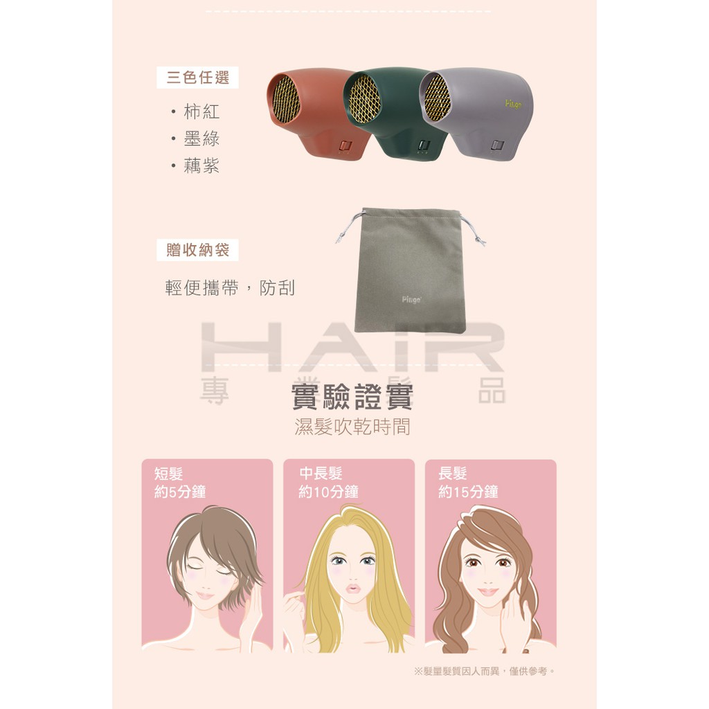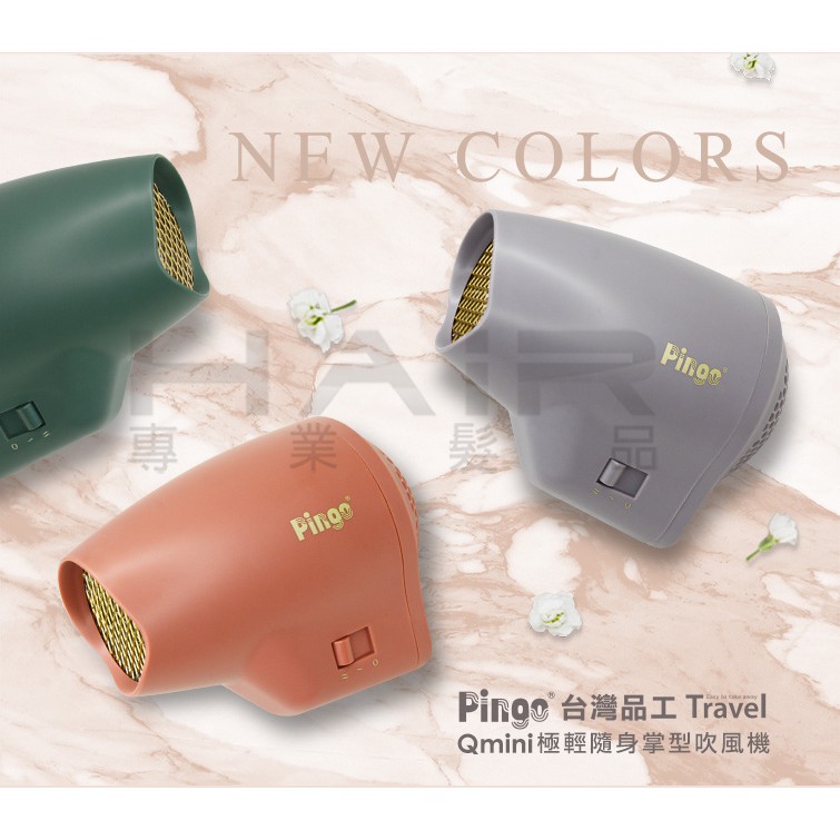 PINGO Travel Qmini 極輕隨身掌型吹風機 HR-1709(柿紅/藕紫/墨綠) 蝦皮直送