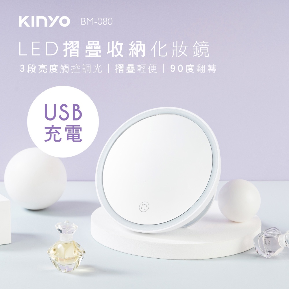 KINYO BM080 LED摺疊收納化妝鏡 現貨 廠商直送
