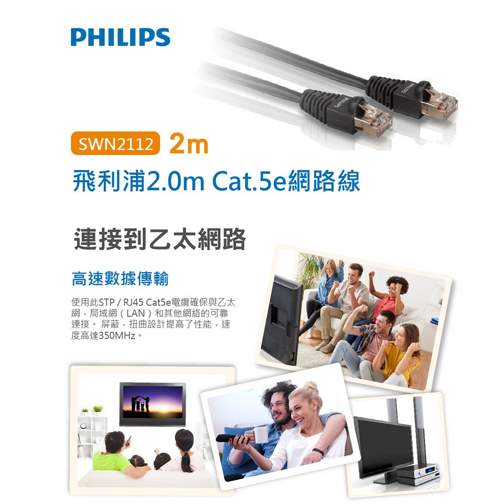 PHILIPS 飛利浦 SWN2112/10 2 .0m CAT.5E 網路線 防疫 居家辦公 現貨 蝦皮直送