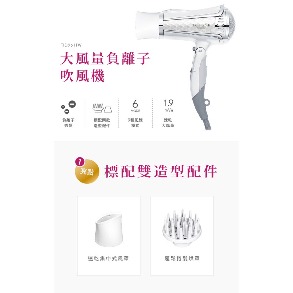 TESCOM 大風量負離子吹風機 TID961TW / TID961 免運 現貨 廠商直送