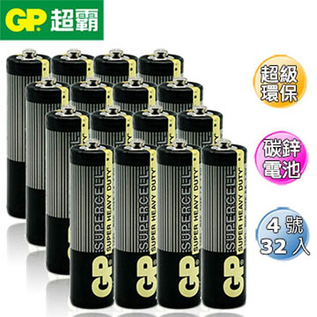 超霸GP 超級環保3號(AA)/4號(AAA)碳鋅電池32粒裝(1.5V電池) 廠商直送