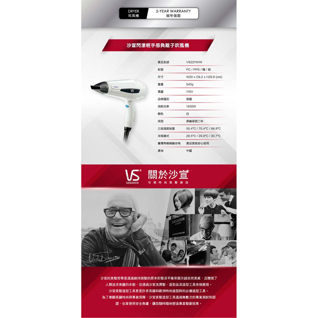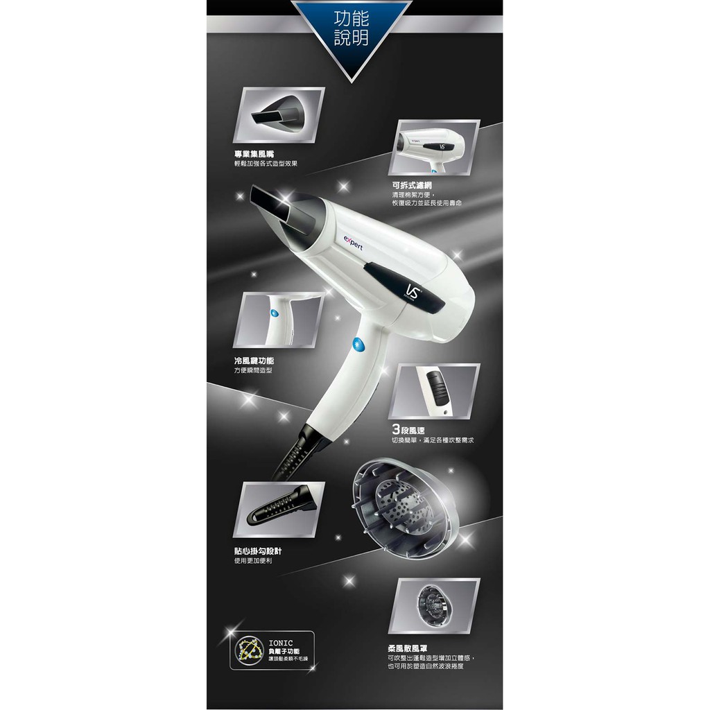 英國VS沙宣 閃漾輕巧大風量負離子吹風機 VS221WIW 現貨 廠商直送