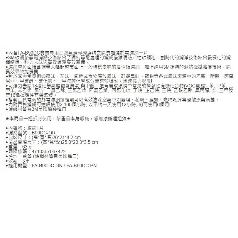 3M B90DC-ORF 淨呼吸寶寶專用型空氣清淨機專用除臭加強濾網 現貨 廠商直送