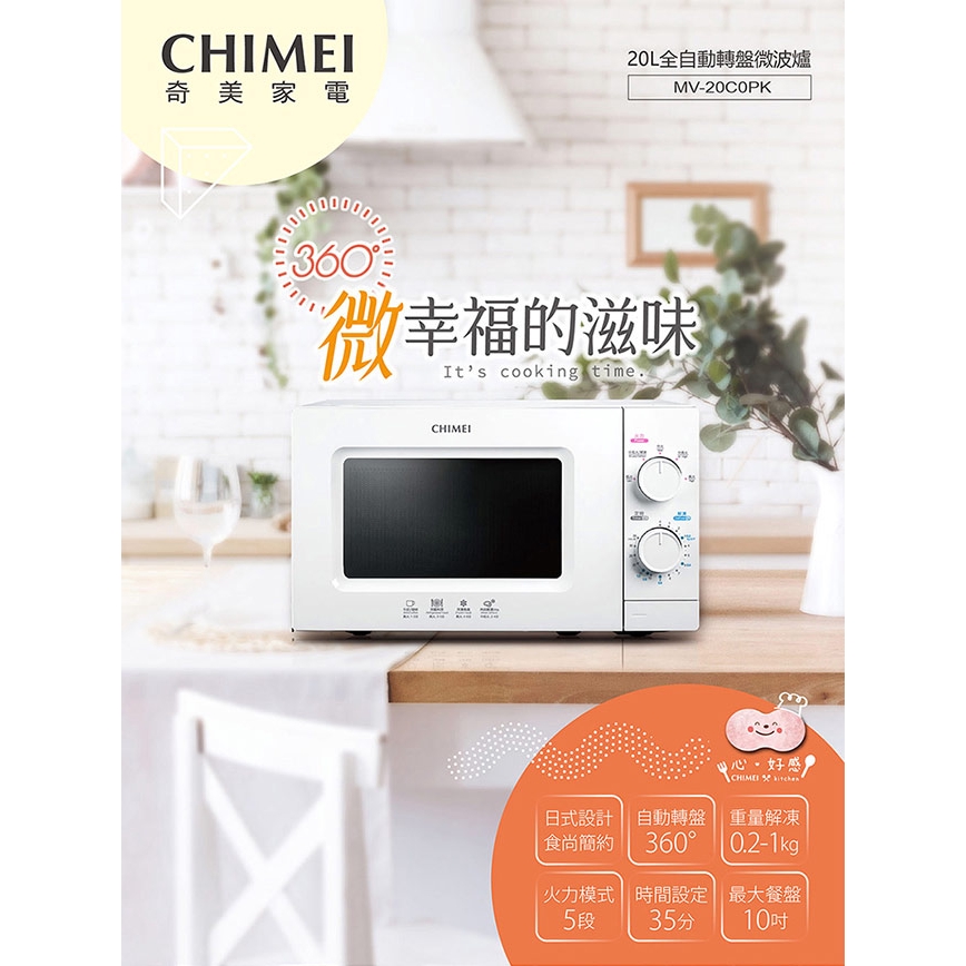 CHIMEI奇美 20L全自動轉盤微波爐 MV-20C0PK 現貨 廠商直送