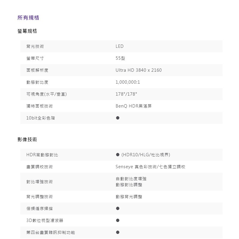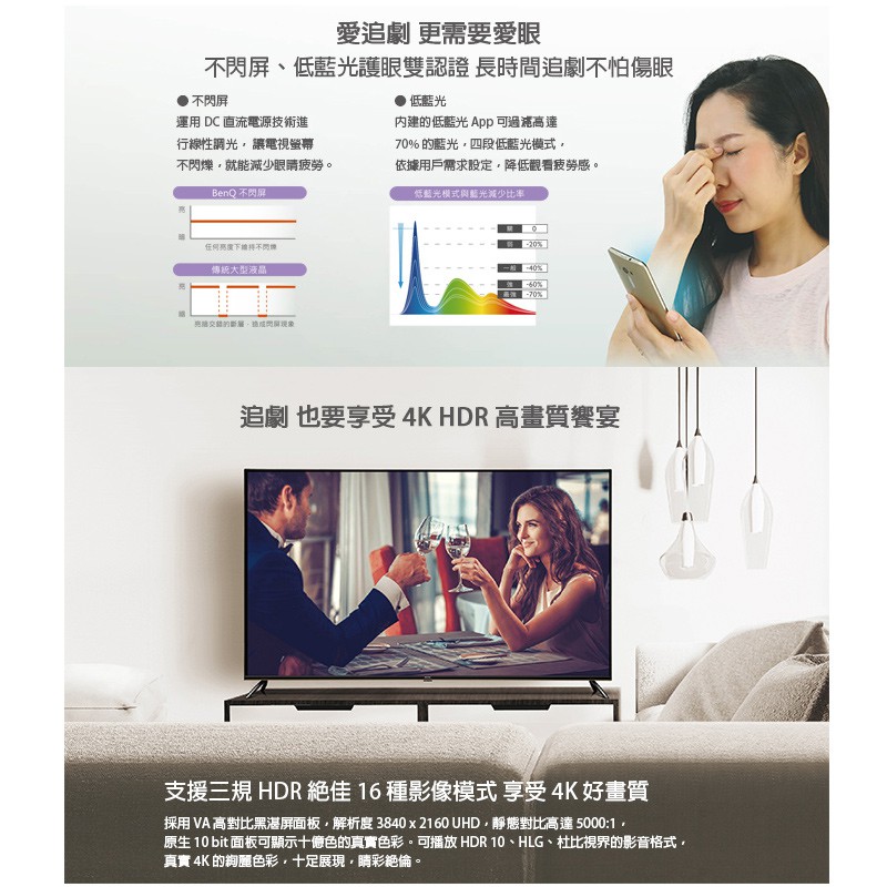BenQ明基 55吋 4K HDR低藍光護眼智慧連網顯示器 55-720 大型配送