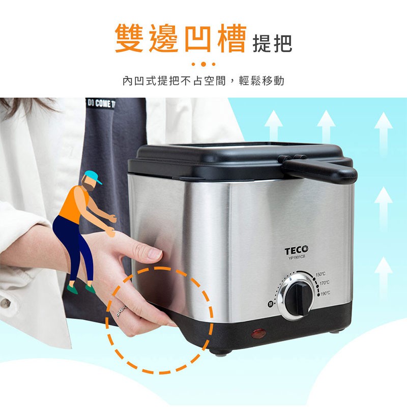 TECO東元 1.5L不鏽鋼輕巧型溫控油炸鍋 YP1901CB 現貨 廠商直送