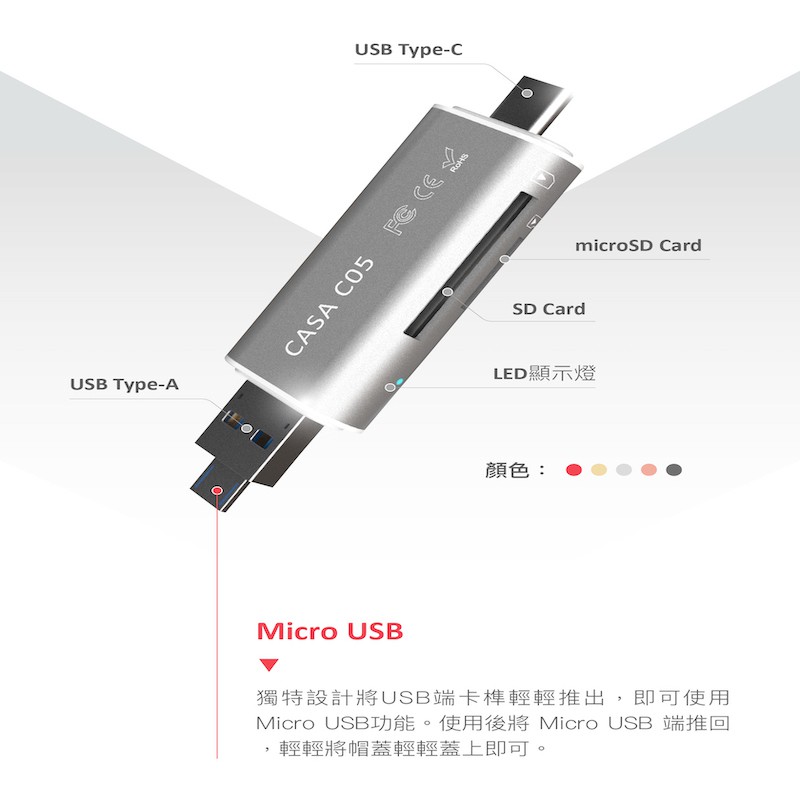 亞果元素 CASA C05 4K 五合一多功能OTG隨身讀卡機 灰 附16G記憶卡 蝦皮直送 現貨