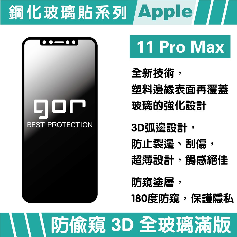 GOR保護貼 Apple iPhone 11 Pro Max 防偷窺保護貼 3D滿版鋼化玻璃保護貼 180防窺 廠商直送