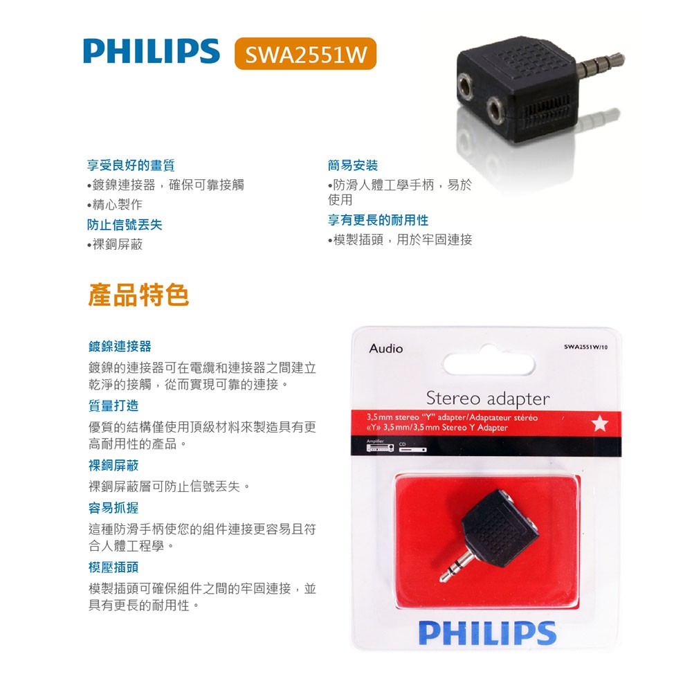 PHILIPS 飛利浦 SWA2551W/10 一分二 3.5mm 立體耳機分接頭 蝦皮直送 現貨