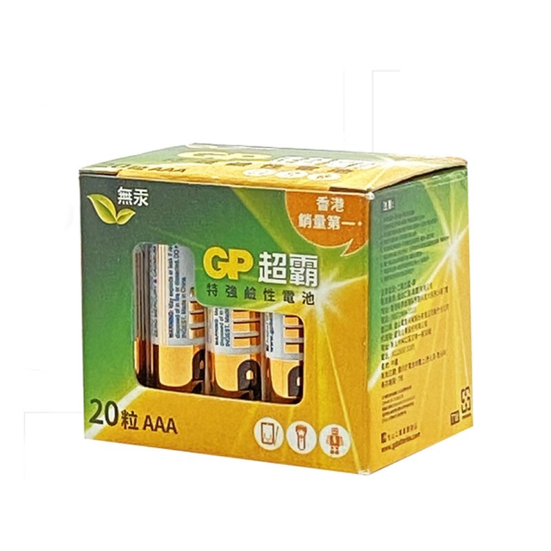 GP超霸 超特強鹼性電池 4號AAA 20入/盒 (收縮包) 贈GP文具組1組 現貨 廠商直送