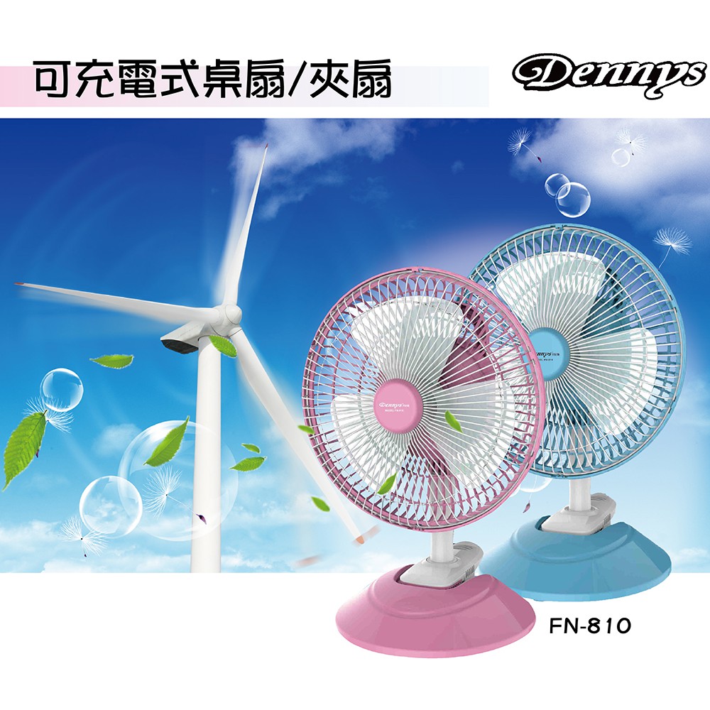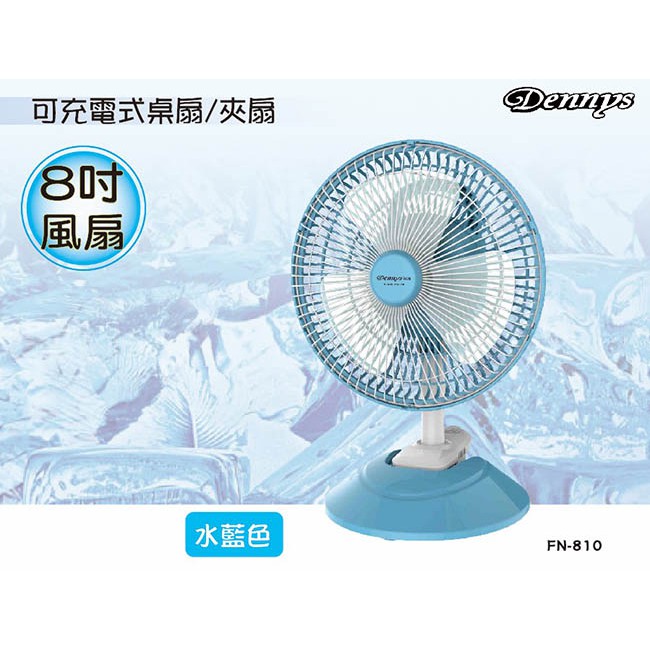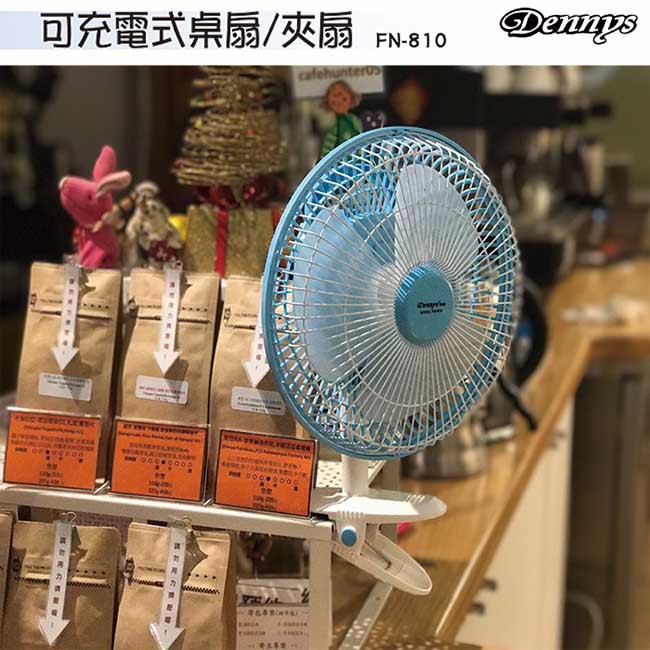 Dennys 8吋USB充電式桌/夾兩用迷你風扇 FN-810 現貨 廠商直送