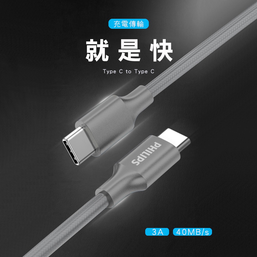 PHILIPS 飛利浦 DLC4548C Type-C toType-C 125cm 手機充電線 蝦皮直送 現貨