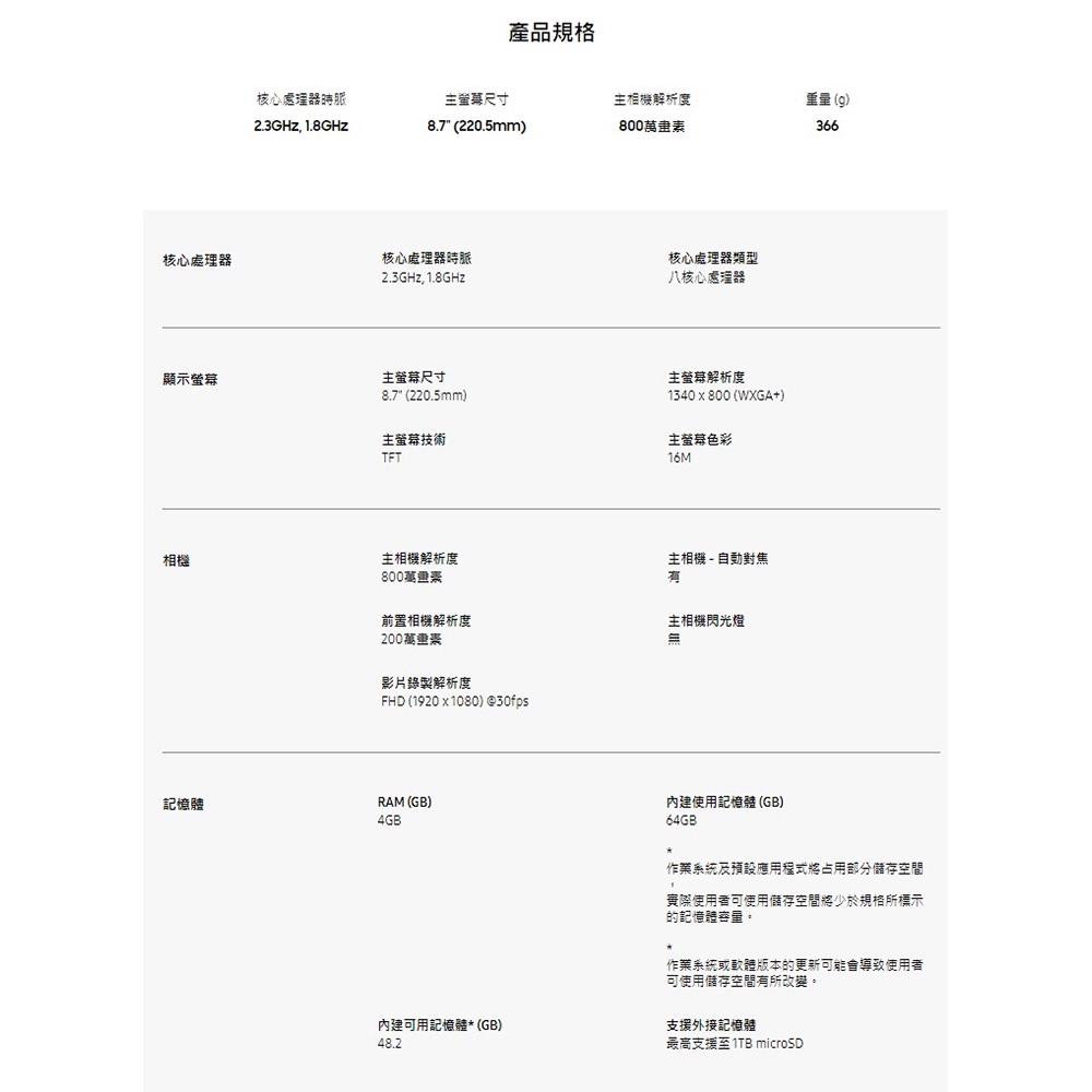 Samsung Galaxy Tab A7 Lite Wi-Fi 4G/64G T220 贈傳輸線+指環扣 廠商直送