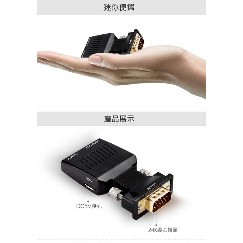迷你VGA轉HDMI轉接器 VGA TO HDMI VGA影像轉接 現貨 廠商直送