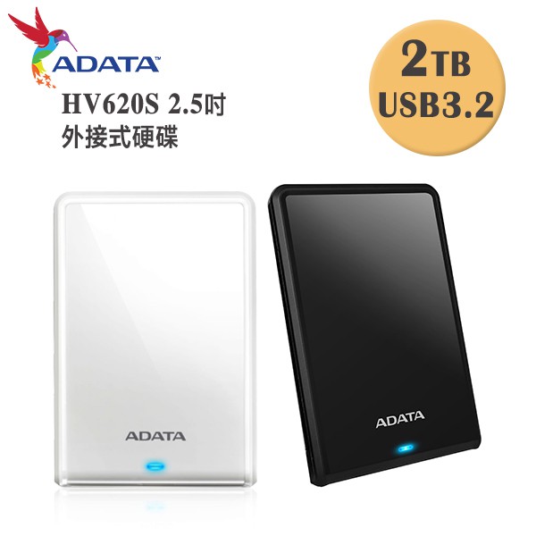 ADATA威剛 HV620S 2TB USB3.2 2.5吋 輕巧防刮 行動硬碟 黑色/白色 現貨 廠商直送