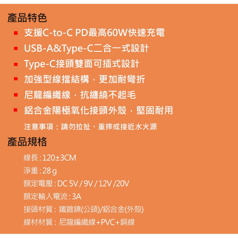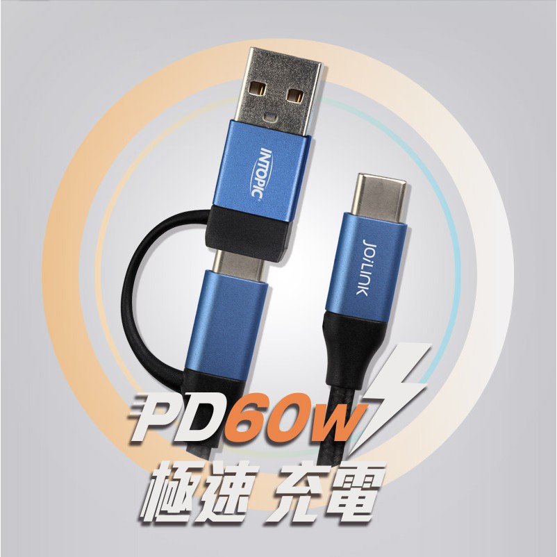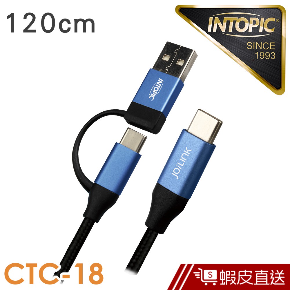 INTOPIC Type-C二合一PD快速充電傳輸線(CTC18/120cm) 蝦皮直送 現貨