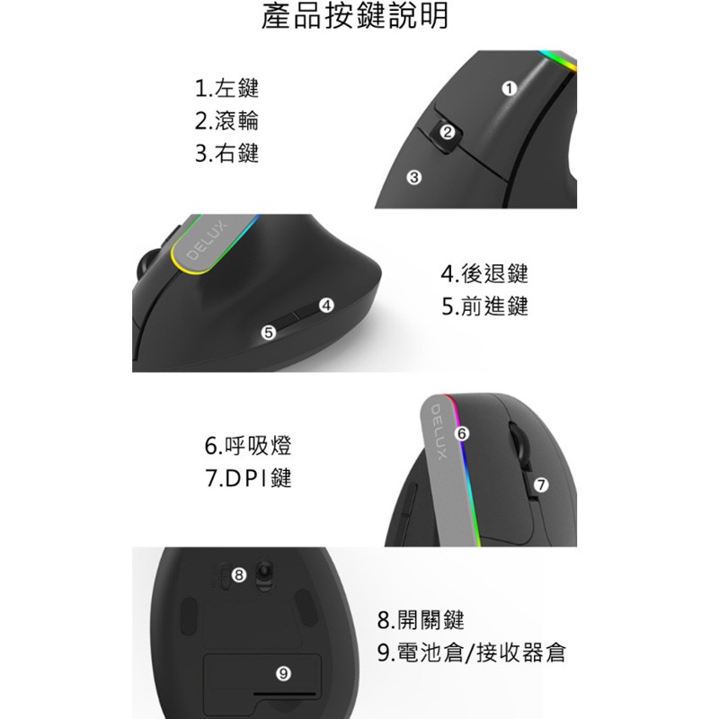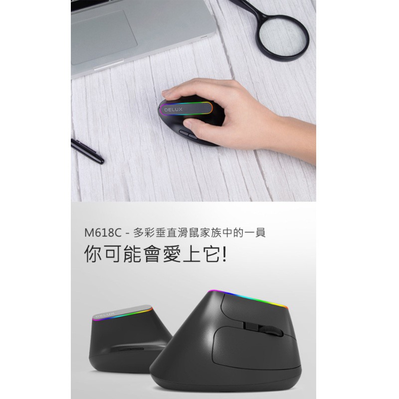 DeLUX M618C 垂直光學滑鼠 無線模式 電池 廠商直送