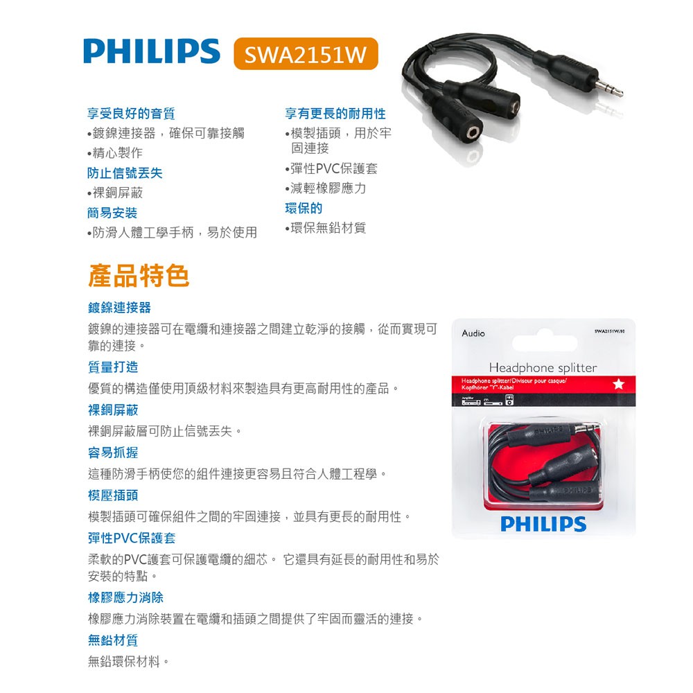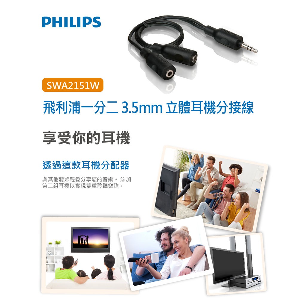 PHILIPS 飛利浦 SWA2151W/10 一分二 3.5mm 立體耳機分接線 蝦皮直送 現貨