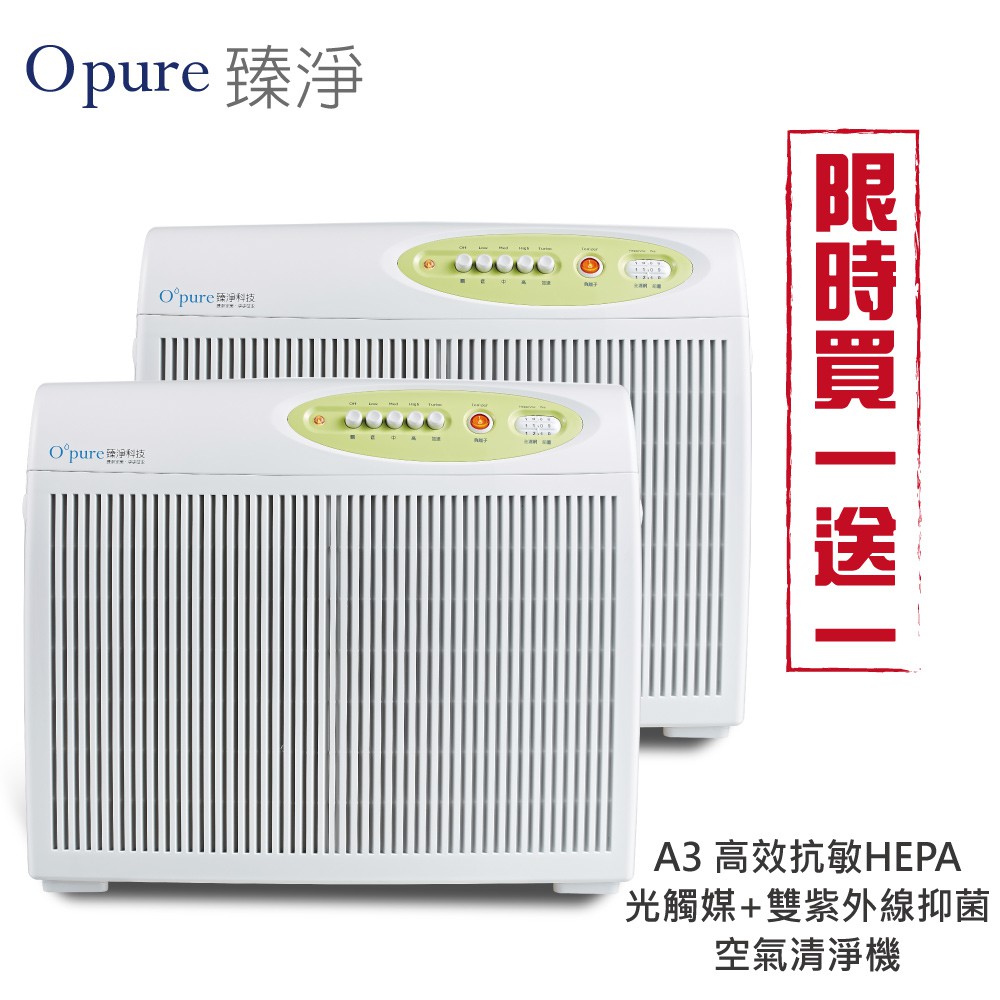 Opure 臻淨 A3 高效抗敏HEPA光觸媒抑菌空氣清淨機 買一送一 廠商直送