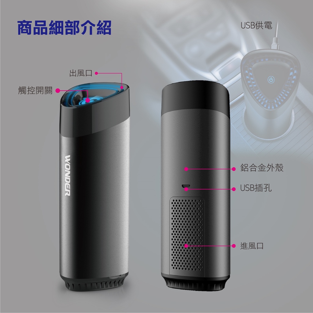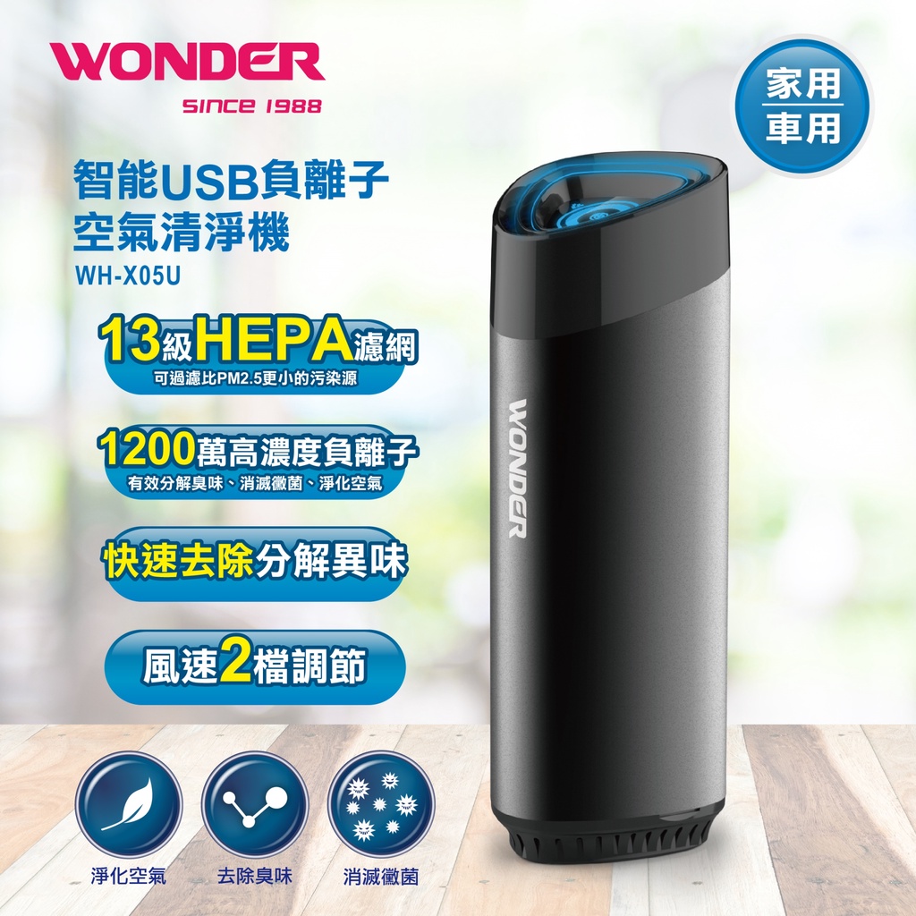 WONDER 智能USB負離子空氣清淨機 WH-X05U 現貨 廠商直送