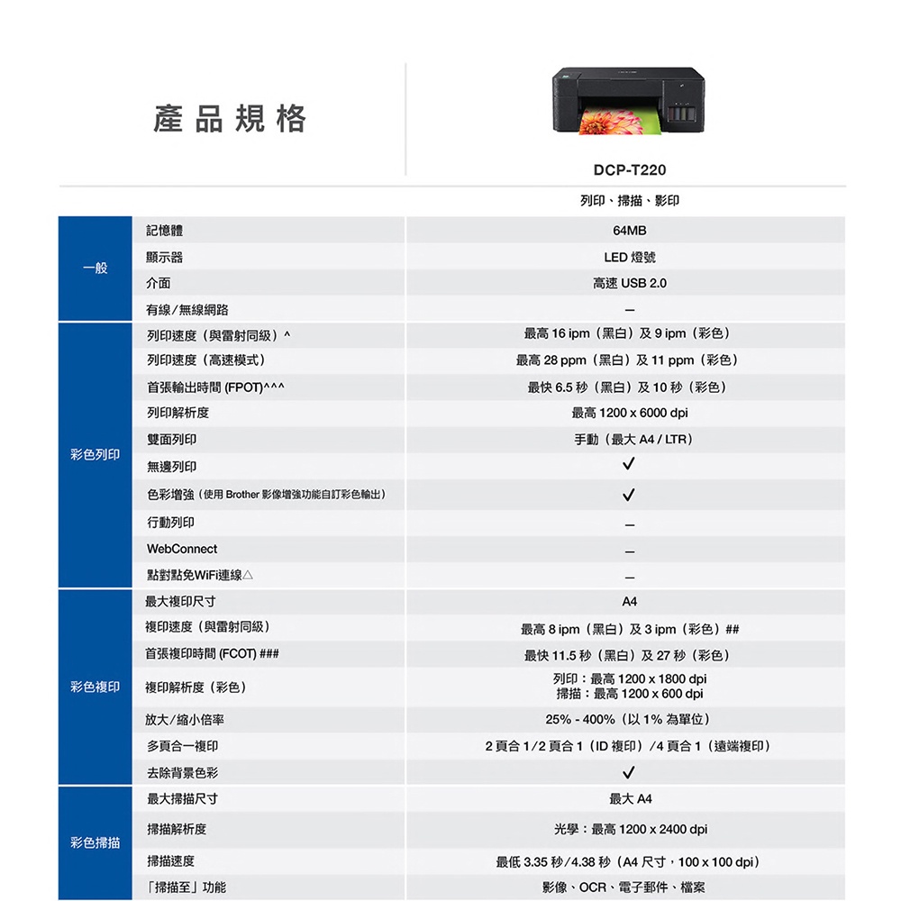 Brother DCP-T220 威力印大連供三合一複合機 廠商直送