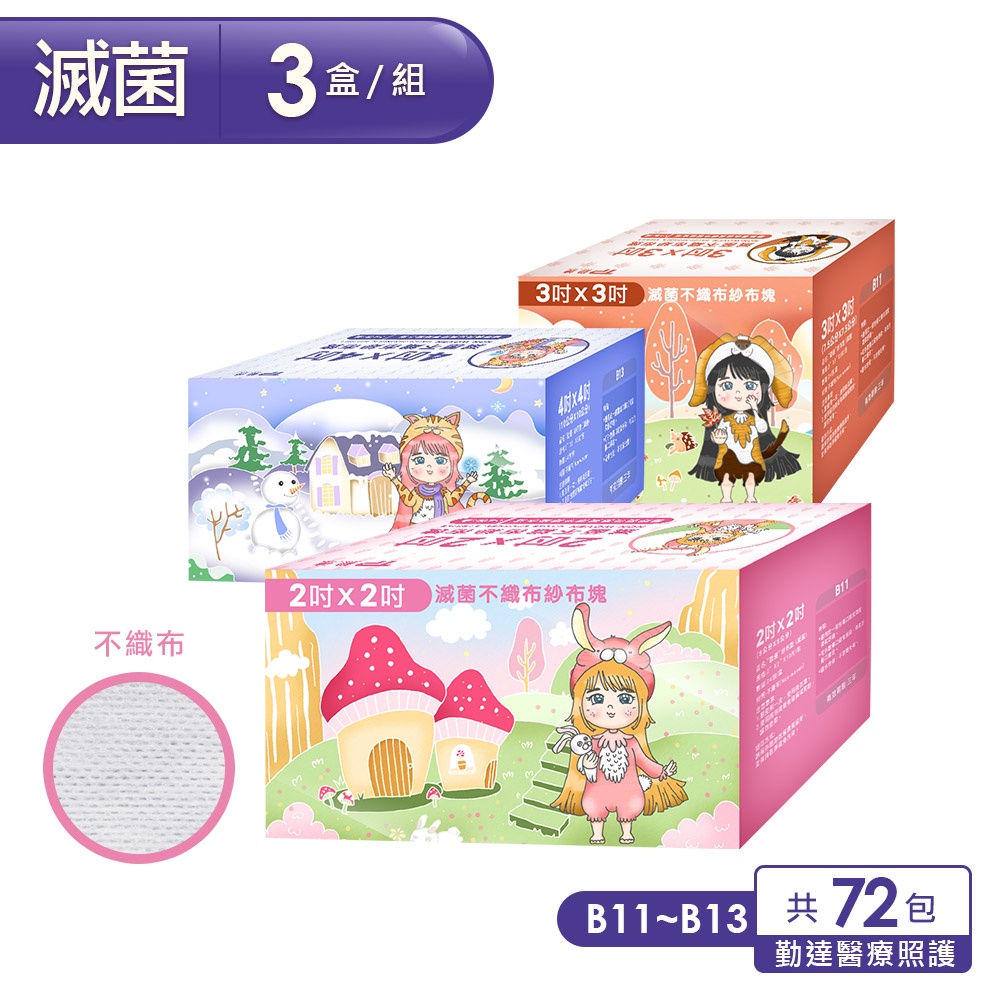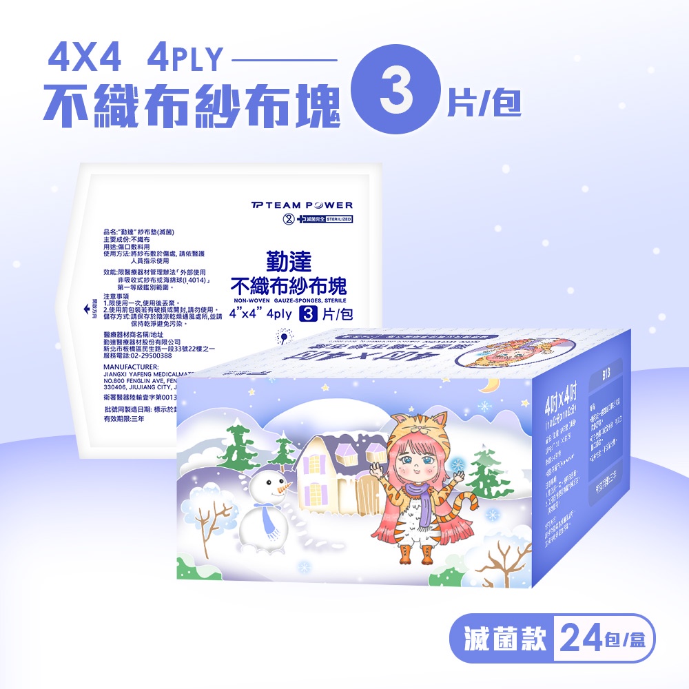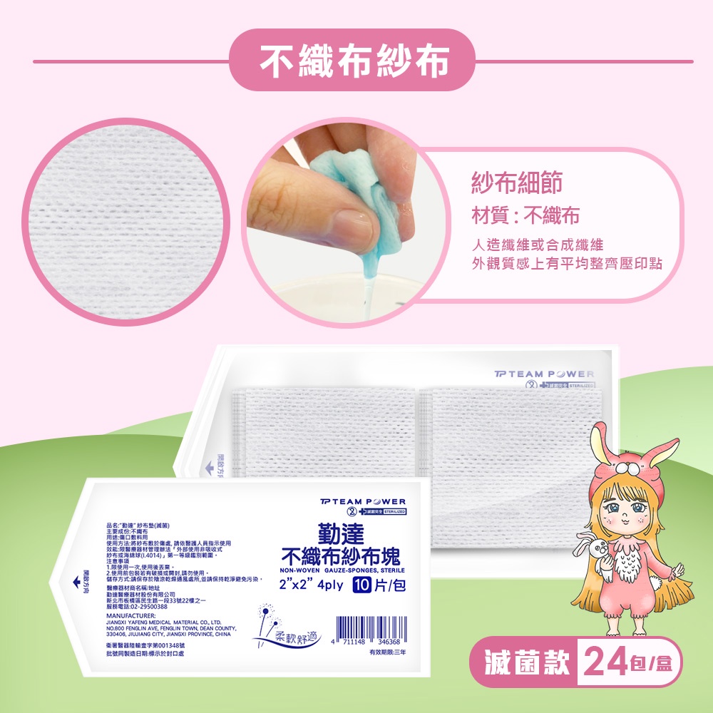 【勤達】2X2、3X3、4X4- 4p不織布墊 10片/包24包/盒X3盒(共72包)(醫療用滅菌款紗布、醫藥箱紗布、