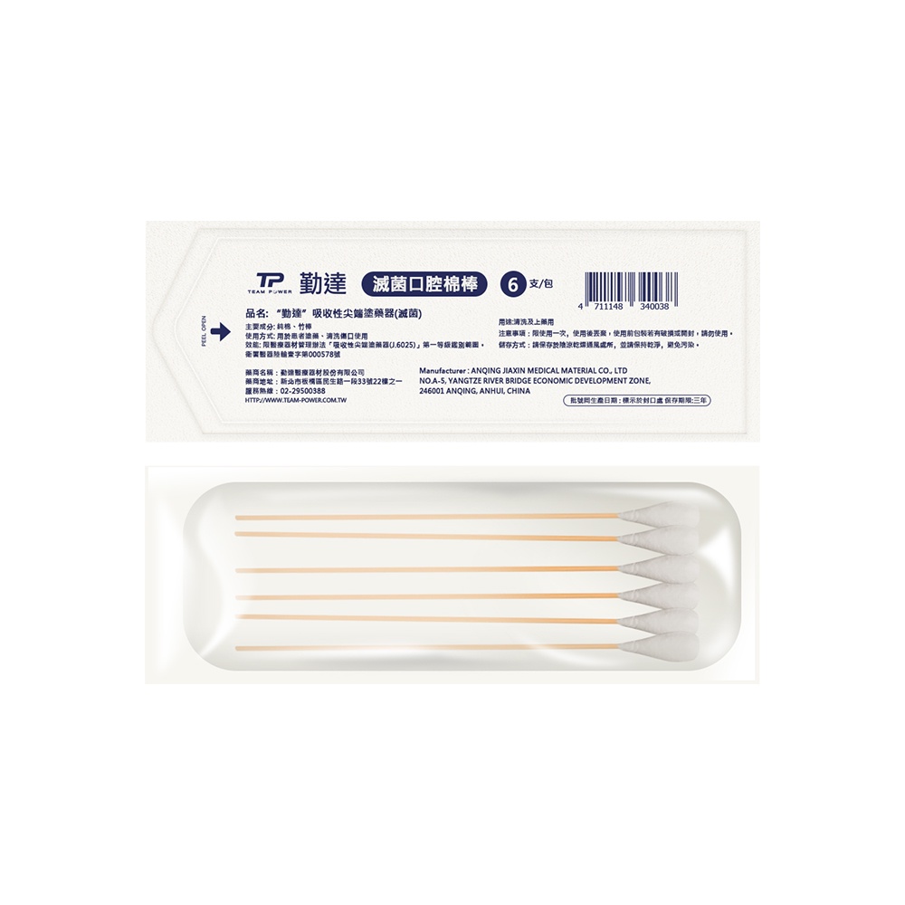 【勤達】滅菌口腔棉棒 10支裝X100包/袋-B77 傷口清洗、上藥護理棉棒、棉花棒