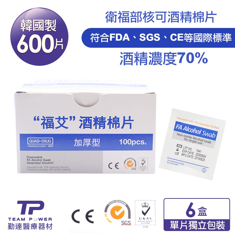 【勤達】韓國製福艾消毒酒精棉片6盒-加厚款共600片-Y01 (內含酒精70%殺菌)