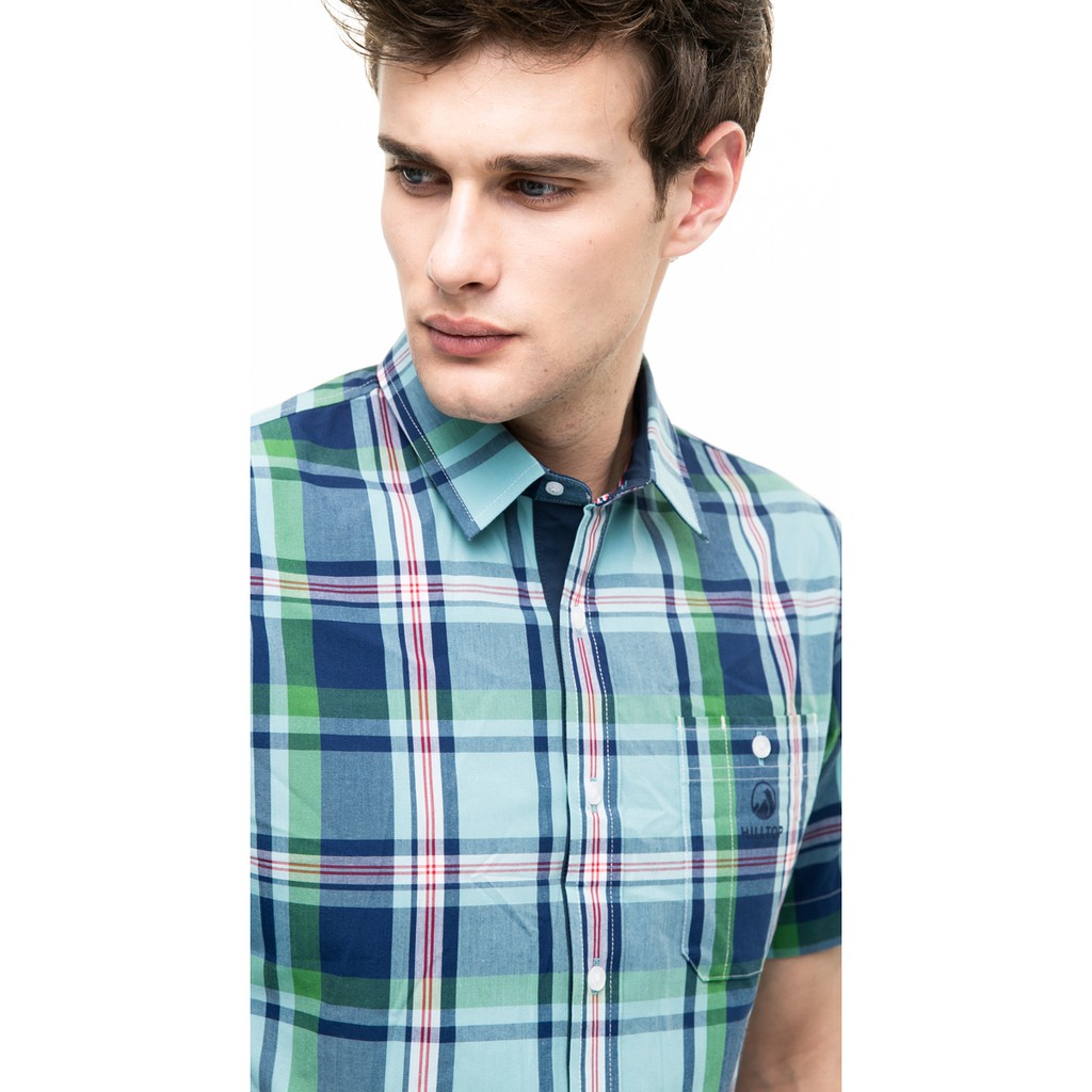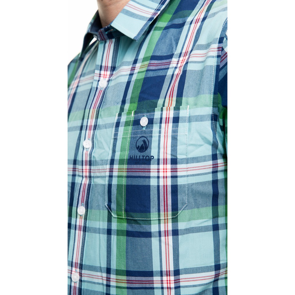 【Hilltop山頂鳥】男款吸濕快乾抗UV短袖襯衫S06M67淺綠底深藍格