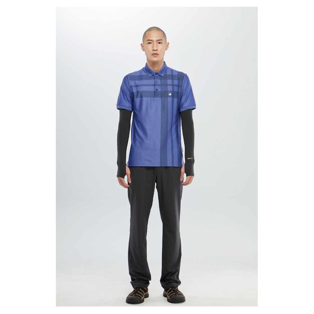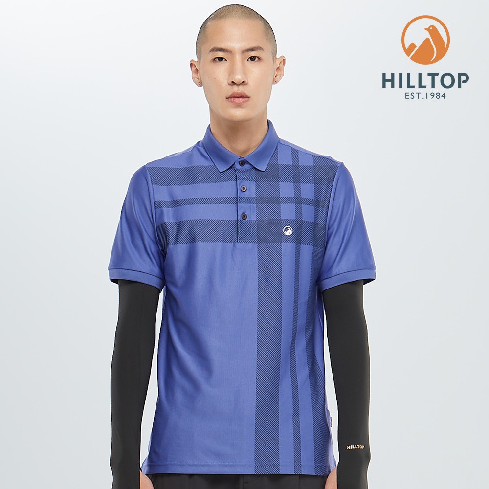 【Hilltop山頂鳥】男款吸濕快乾polygiene抗菌彈性POLO衫 S14MI1 炫藍底憂鬱藍條
