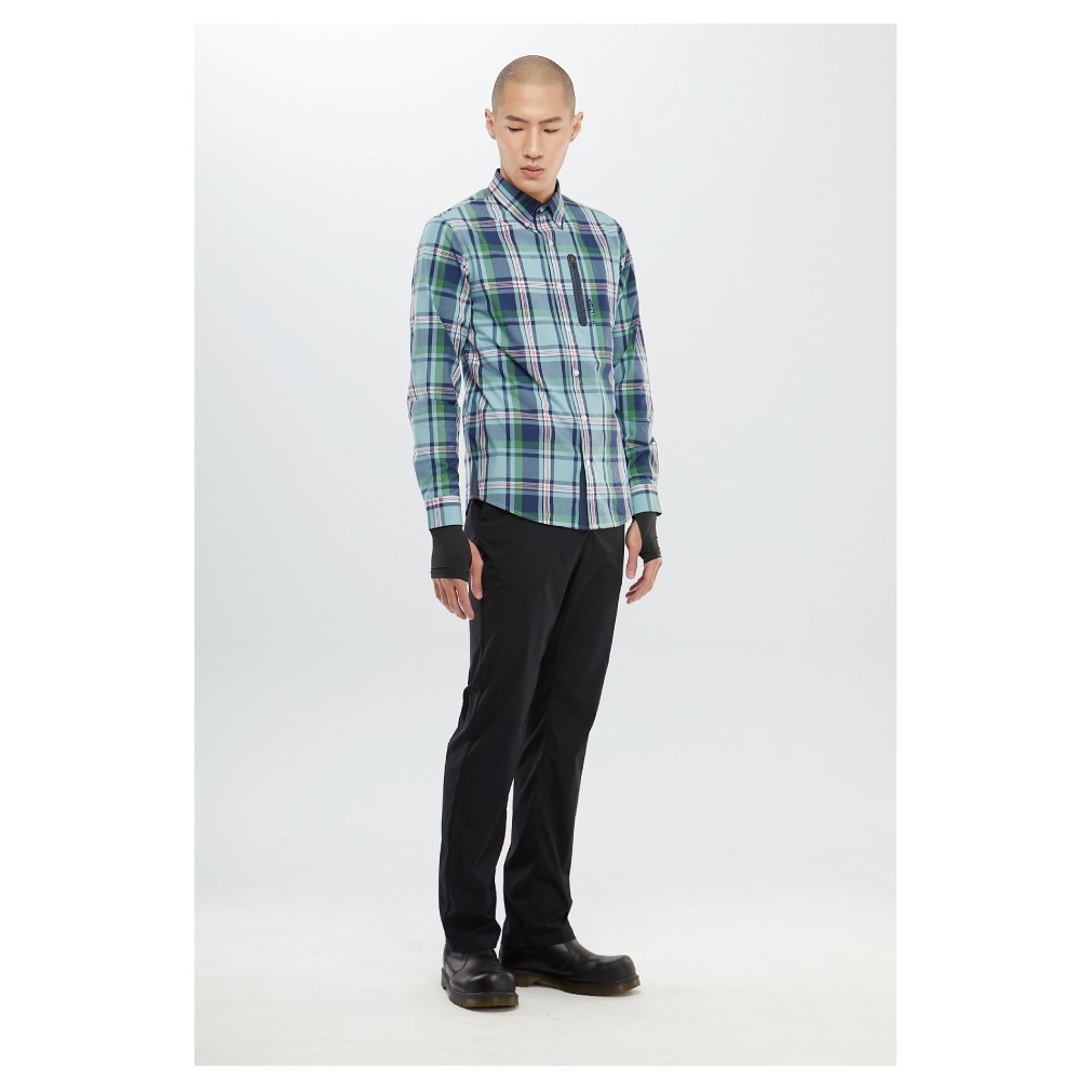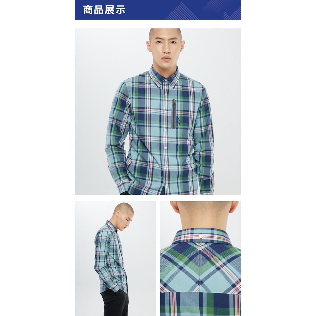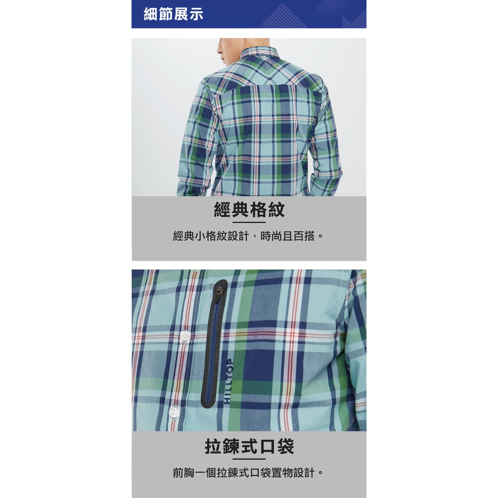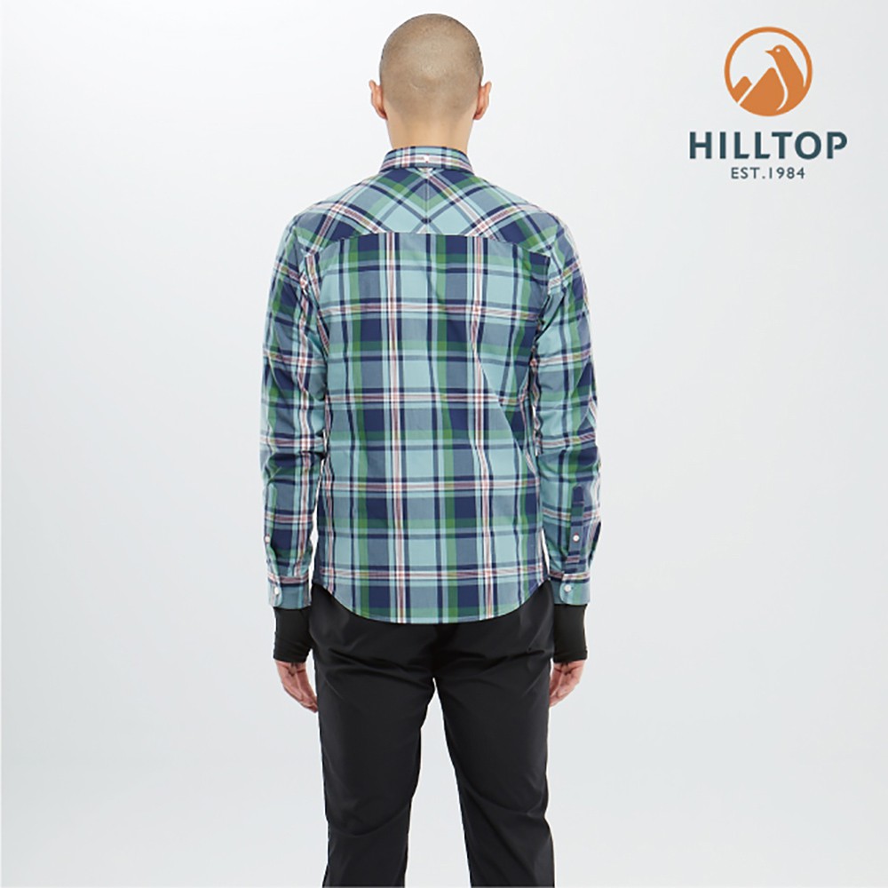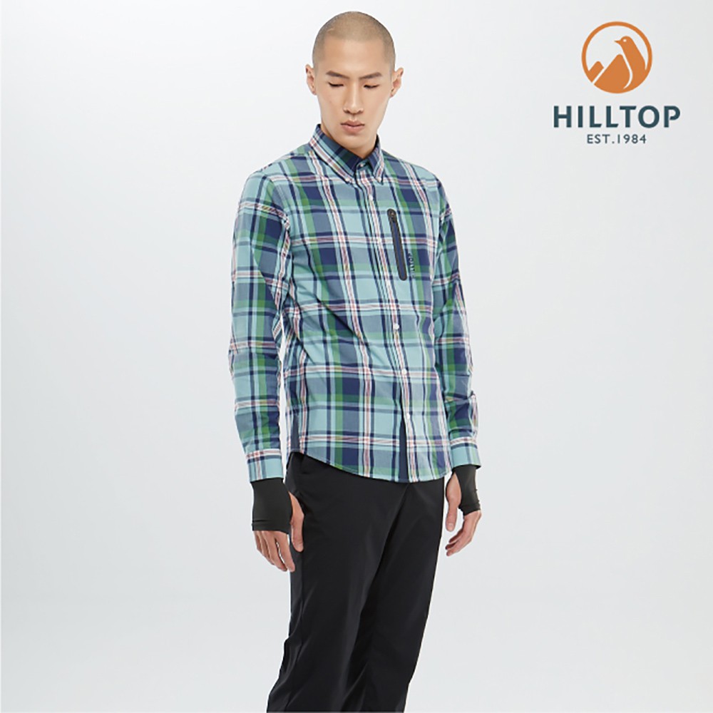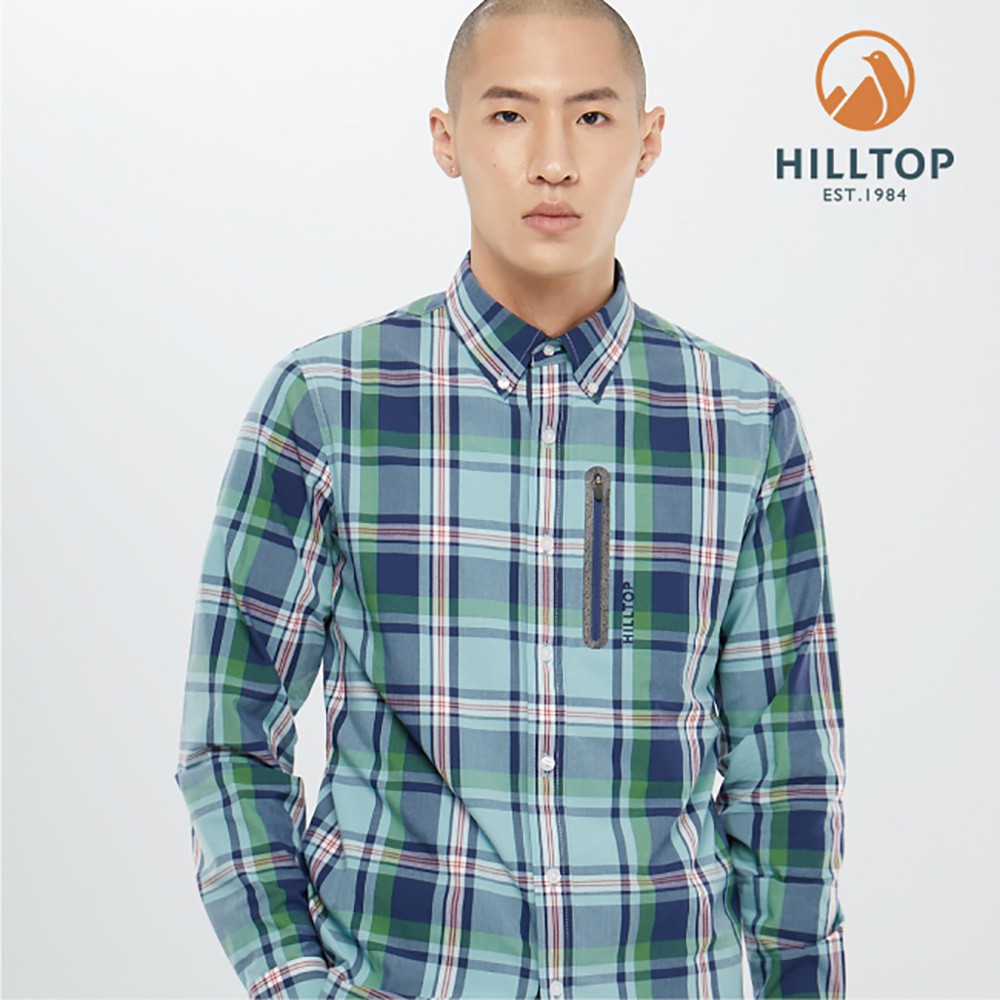 【Hilltop山頂鳥】男款吸濕快乾抗UV長袖襯衫 S05M66 淺綠底深藍格