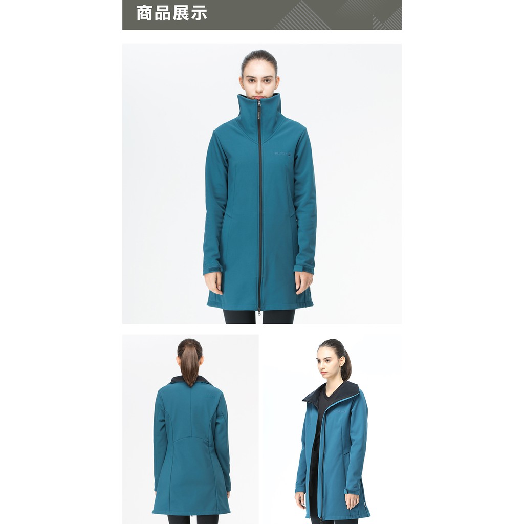 【Hilltop山頂鳥】女款WINDSTOPPER防風透氣刷毛長版外套H21F19藍
