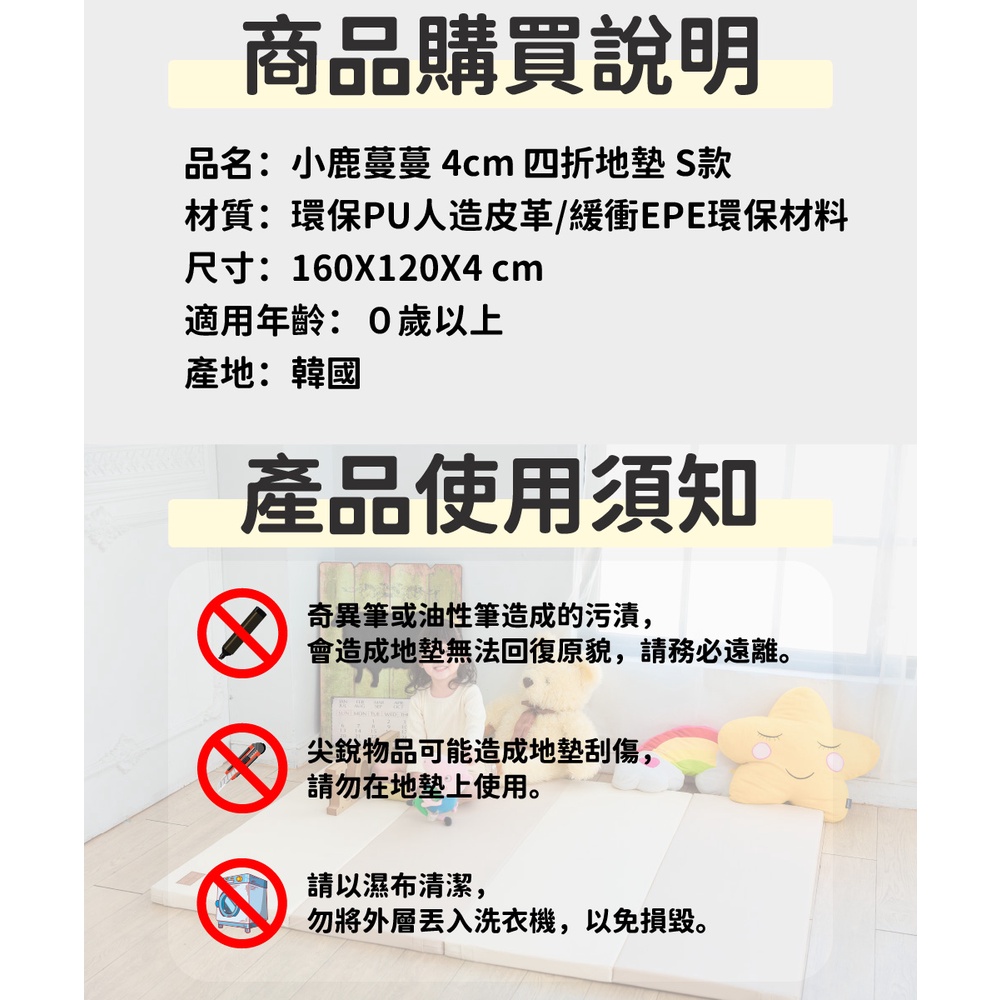 【Mang Mang 小鹿蔓蔓】兒童4cm摺疊遊戲地墊(四折S款)-糖果色