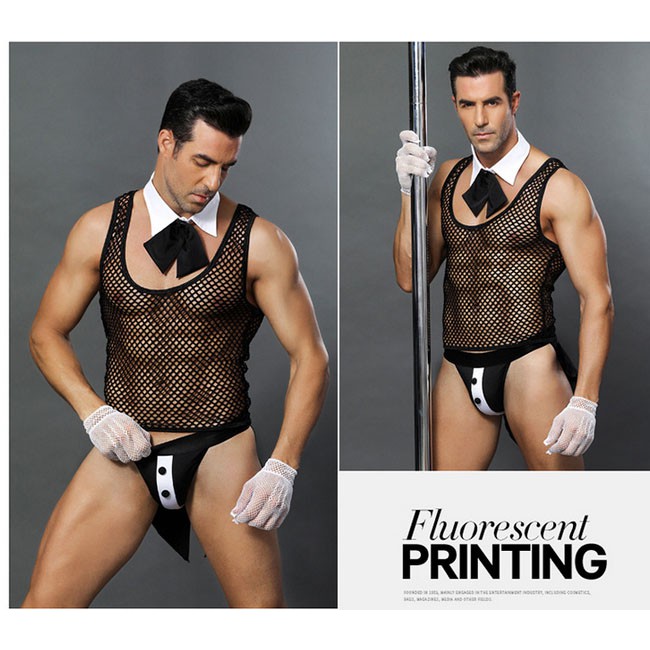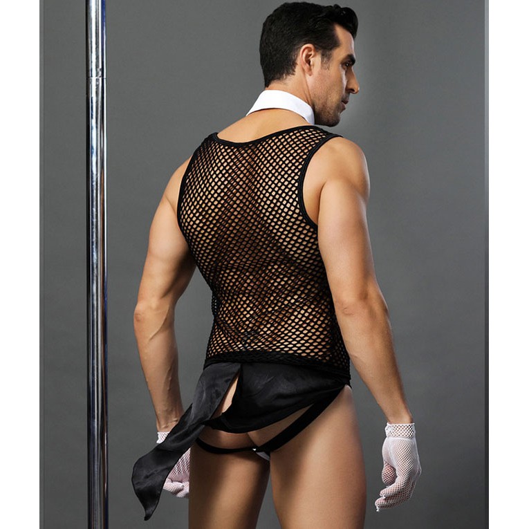 [台灣現貨]夜店猛男制服黑色網衣燕尾內褲男生驚喜禮物 流行E線A7172