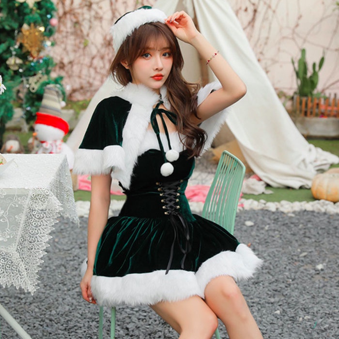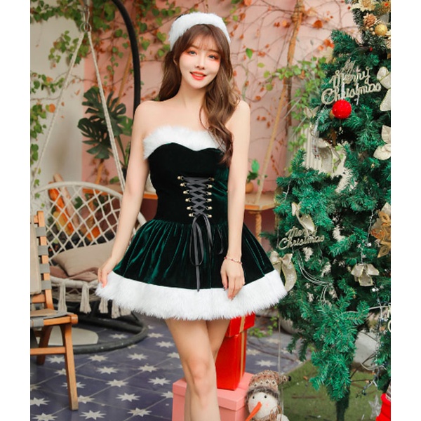 流行E線F079-性感聖誕節服飾 露肩洋裝聖誕服 女生 聖誕節服裝派對服 聖誕節禮物[台灣現貨]