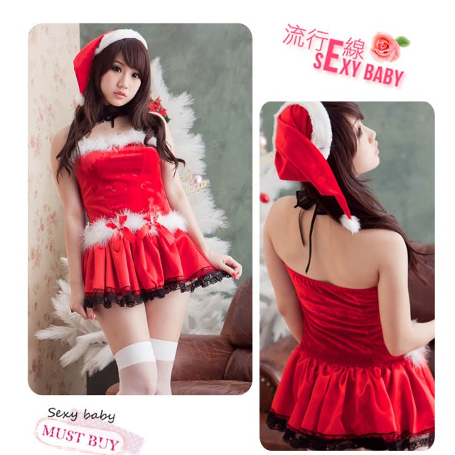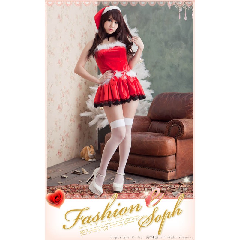 流行E線F019 聖誕裝 露肩澎澎聖誕節洋裝 聖誕節跨年角色扮演制服派對xmas聖誕服裝含聖誕帽