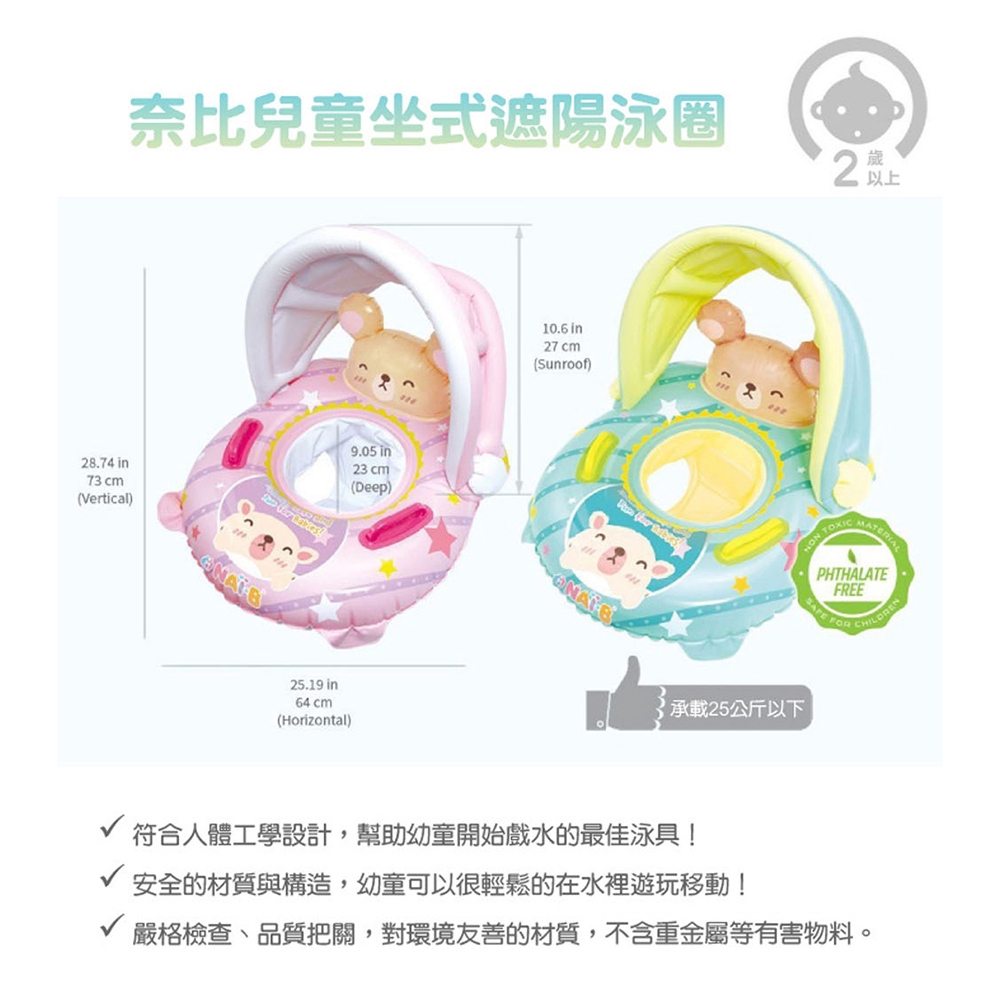 Nai-B 奈比 韓國 兒童坐式遮陽泳圈-粉/綠兩色可選 (適合2歲以上使用)【YODEE優迪】