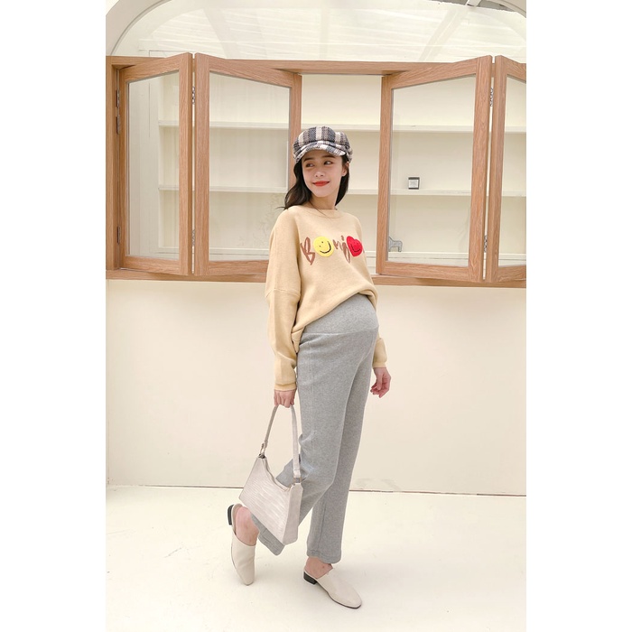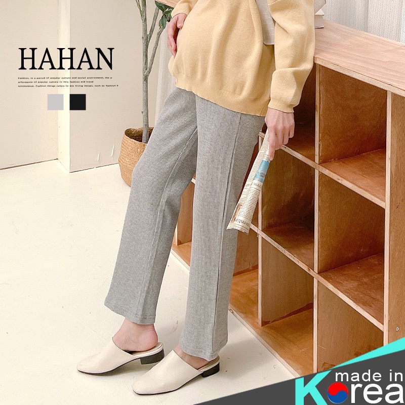 瑜珈腰 鬆餅格紋休閒直筒褲 哈韓孕媽咪孕婦裝【HB4046】