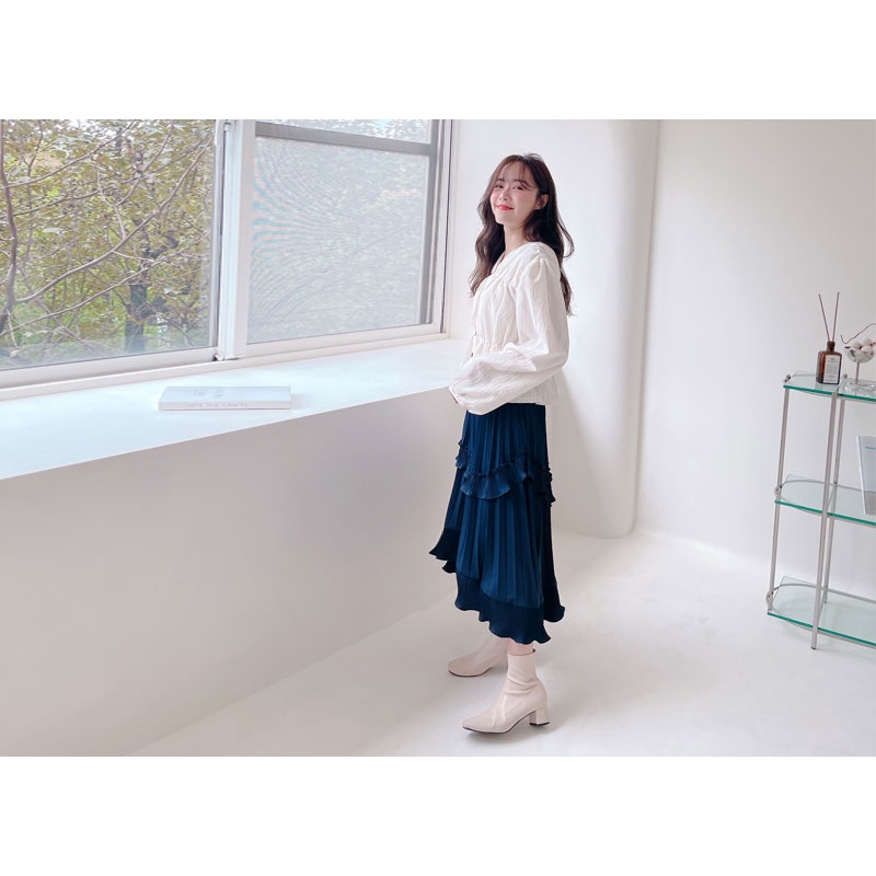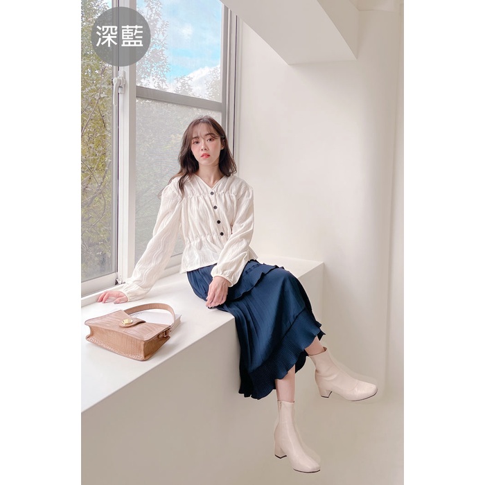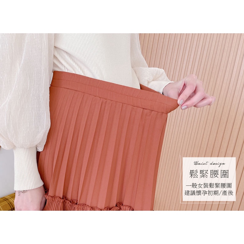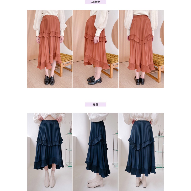 哈韓孕媽咪孕婦裝 鬆緊腰 荷葉不規則百褶長裙【HB4048】