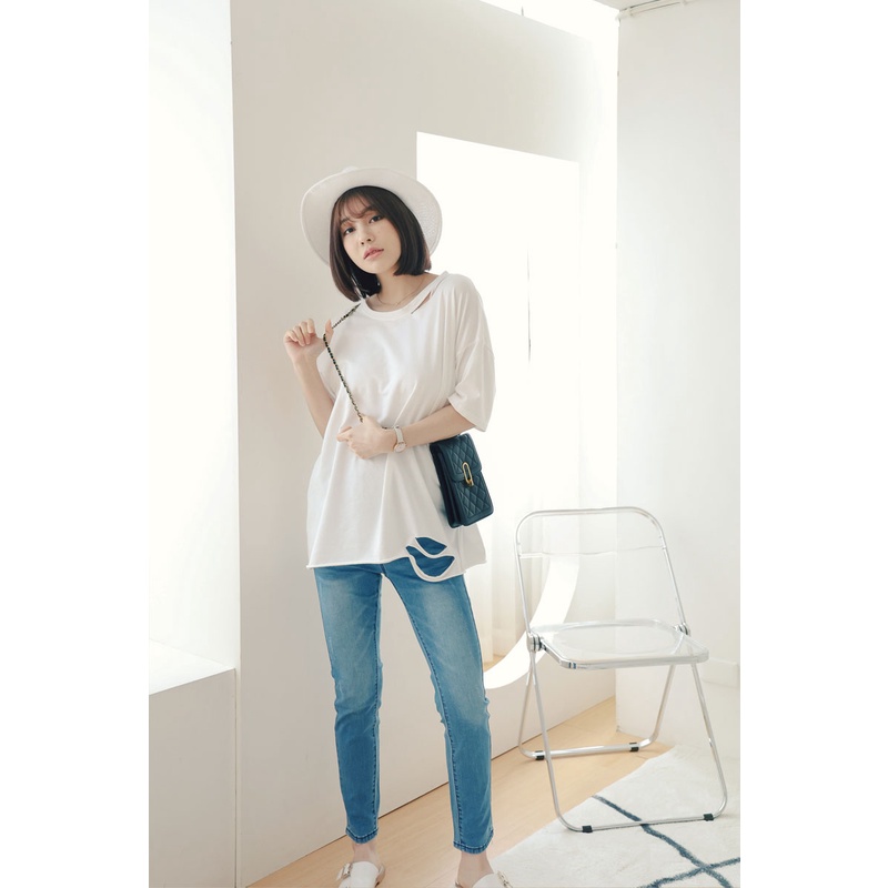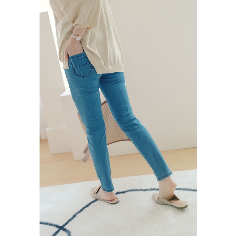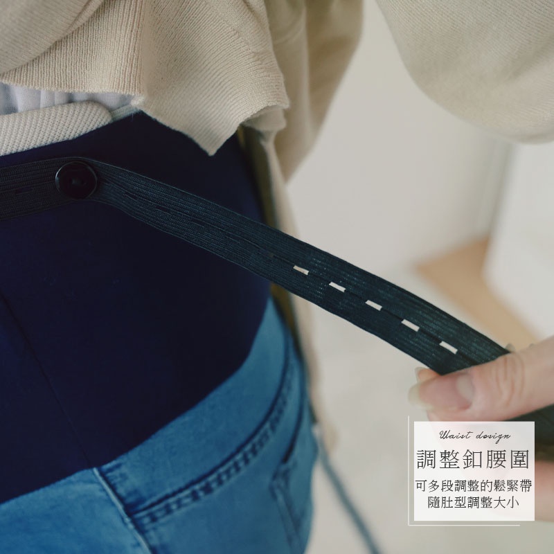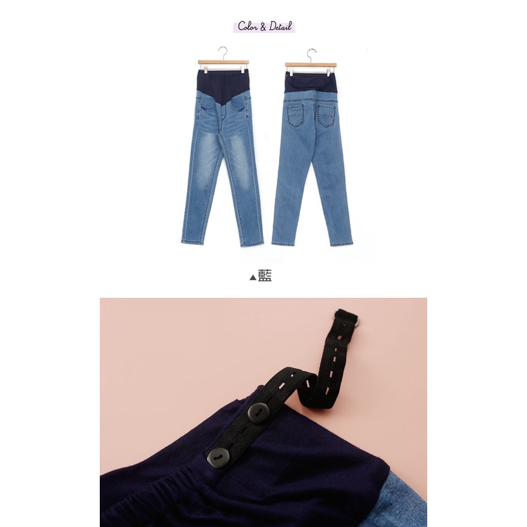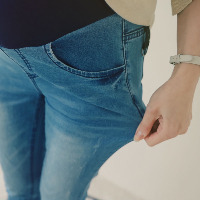 哈韓孕媽咪孕婦裝 腰可調 簡約刷色窄管牛仔褲 【HB4070】