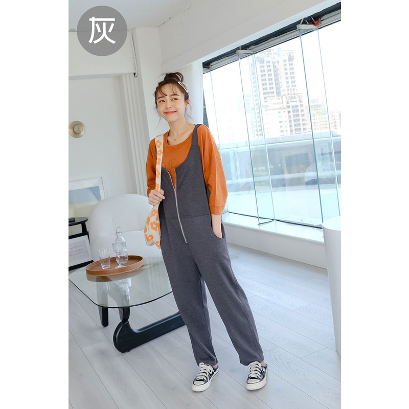 仿牛仔 前拉鍊直筒吊帶褲 哈韓孕媽咪孕婦裝【HB4123】