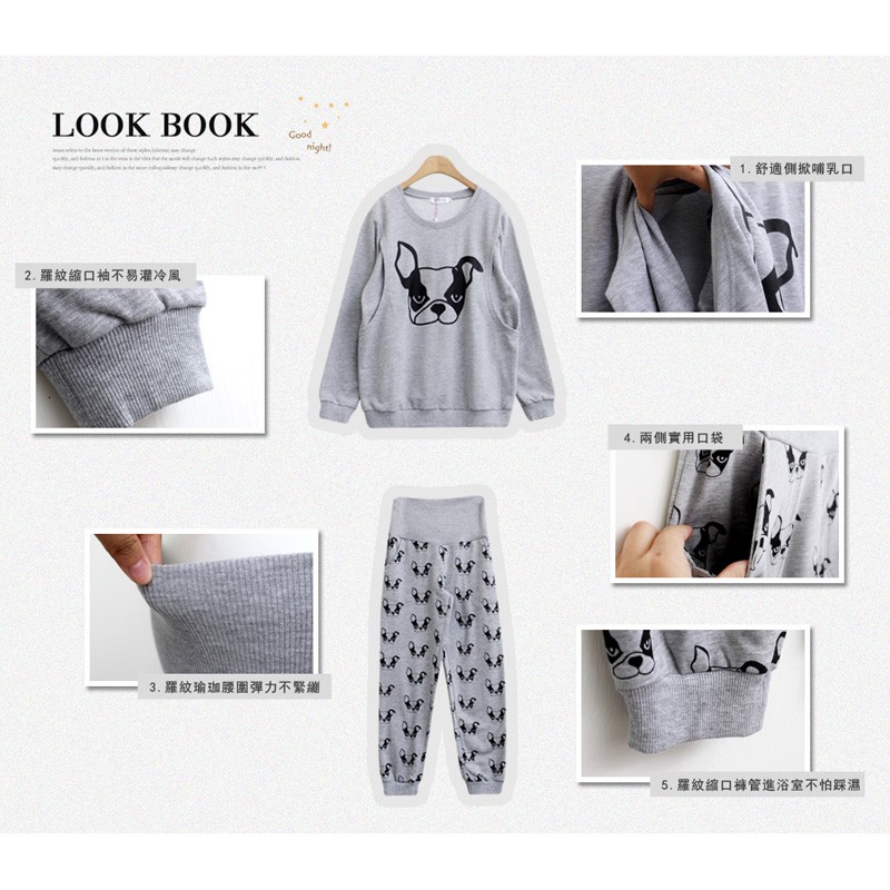哈韓孕媽咪孕婦裝 HAHAN獨家自訂款 哺乳衣 月子必備法鬥狗狗居家套裝【HB3514】