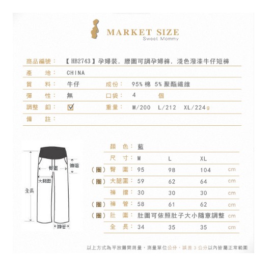 腰可調 螢光鈕扣潑漆淺色牛仔短褲【HB2743】哈韓孕媽咪孕婦裝