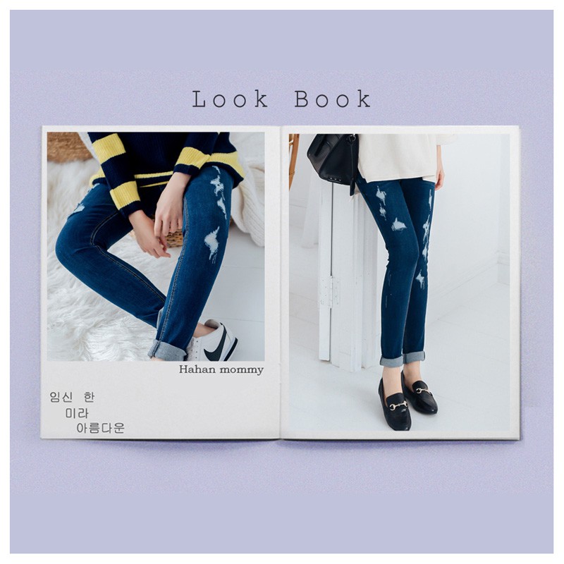 腰可調孕婦褲 割破刷色窄管牛仔褲【HB3552】